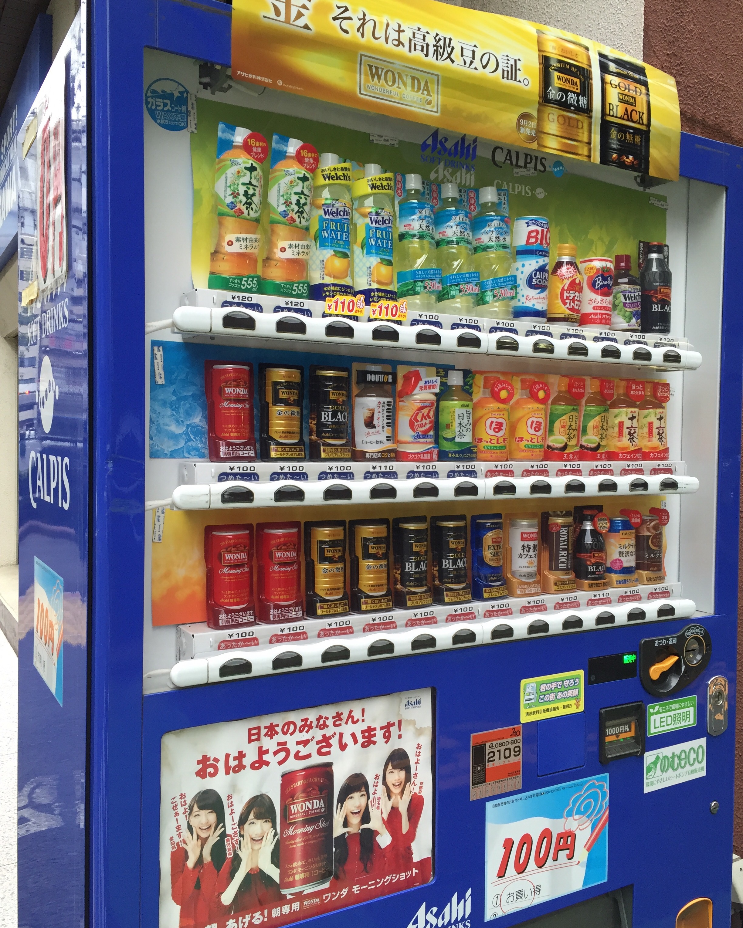 Ovunque si trovano distributori di lattine di bevande freddo (tasto blu) e bevande calde (tasto rosso)