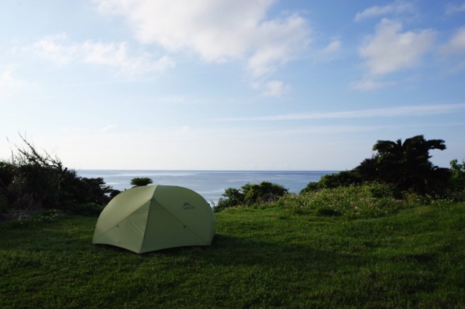 Su questa stessa spiaggia il nostro vicino di tenda Harry ogni sera all’ora del tramonto e in solitudine intona canzoni popolari malinconiche, nella antica lingua di Okinawa.