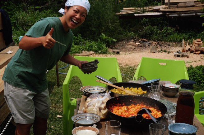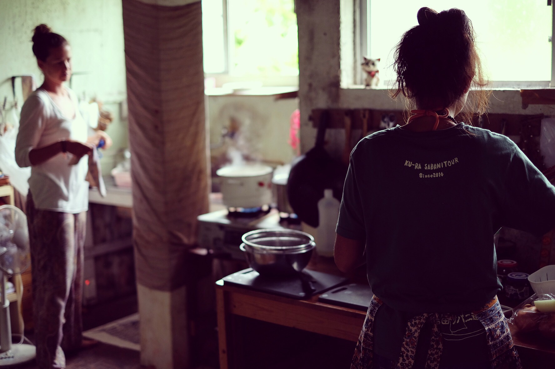 Passeremo le nostre ultime giornate sull’isola di Ishigaki a casa loro, testimoni del ritmo lento e produttivo che dà vita al “sabani”, l’imbarcazione tradizionale dei pescatori di Okinawa. Mentre Yoshi e i suoi due aiutanti armati di scalpello lavorano travi di legno, Akemi fà magie in cucina deliziando ogni intervallo con cibo di ispirazione indiana e sfruttando tutte le erbe del giardino, ma appena fiuta l’occasione di imparare una ricetta italiana ci spalanca le porte della cucina.
