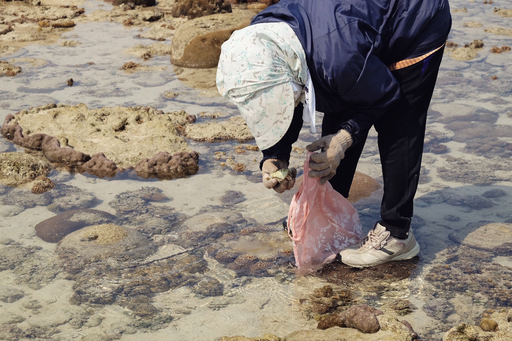 Con la bassa marea il reef diventa un campo di raccolta di alghe e conchiglie