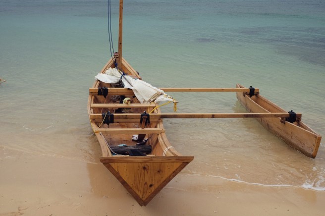 Un tempo costruiti utilizzando solo il pan’noki (albero del pane), ora sono un mix di diversi legni: il sughì (cedro rosso giapponese) per lo scafo e per l’albero, il terihaboku (calophyllum inophyllum) – estremamente duro e resistente – per la base dell’albero.