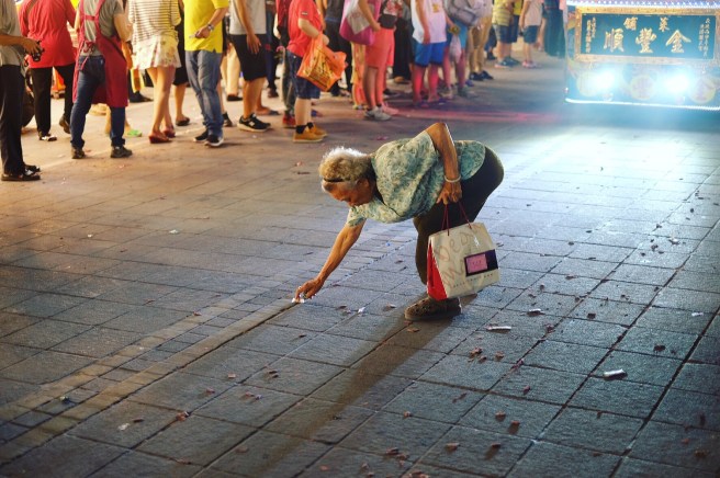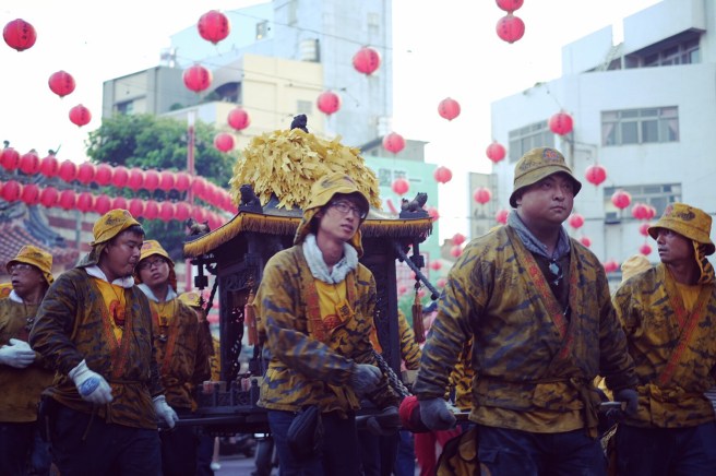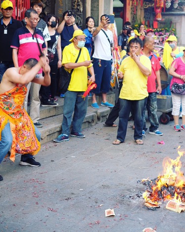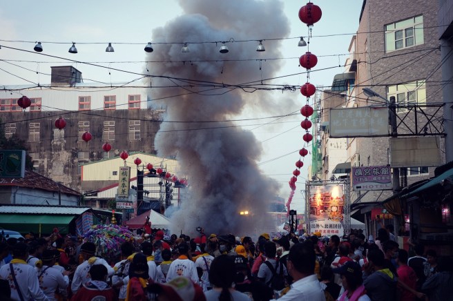 Audaci ragazzi vestiti con divise tigrate – qui a Beigang il dio tigre ha molti più seguaci di quanti ne abbia nel resto di Taiwan – esplodono centinaia di petardi ai loro piedi mentre fedeli con maschere di leone improvvisano danze e un medium impossessato da un non meglio precisato dio si colpisce con una spada per dimostrare la sua superiorità divina al dolore.
