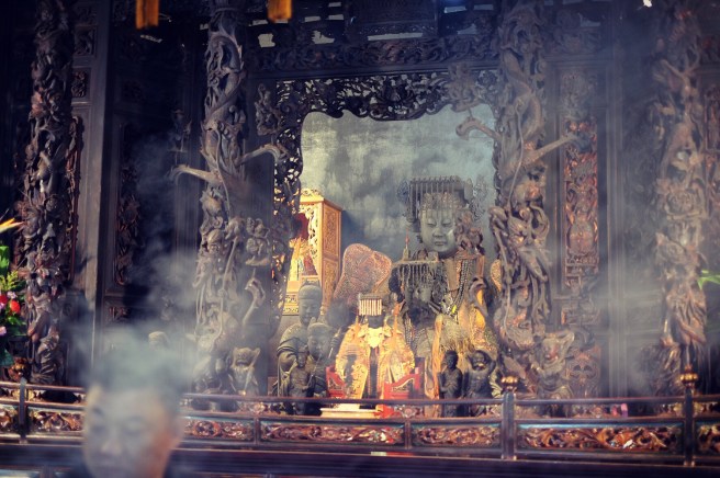 Quando raggiungiamo Tainan, la capitale gastronomica di Taiwan, la nostra amica Niddle ci scorrazza tra bancarelle, ristoranti e templi soddisfacendo brillantemente tutte le nostre curiosità e spiegandoci che Matsu a parte, il caotico pantheon taoista include un’infinità di dèi, ognuno incaricato di risolvere specifici problemi o dare protezione in un determinato campo, ed ad ognuno di essi è dedicato un tempio o almeno un area di esso.