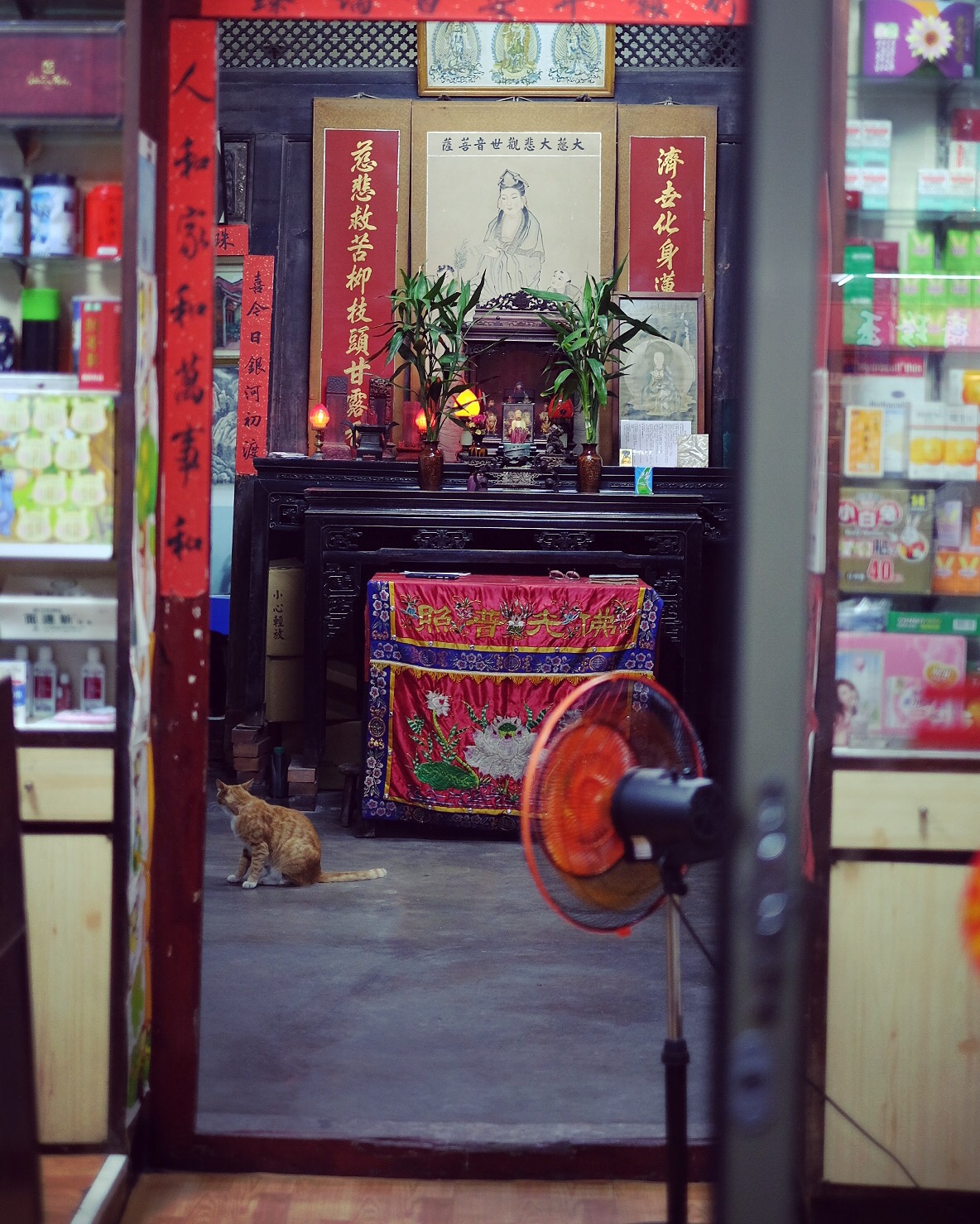 Un altarino dedicato al culto degli antenati. all’interno di un negozio/casa.