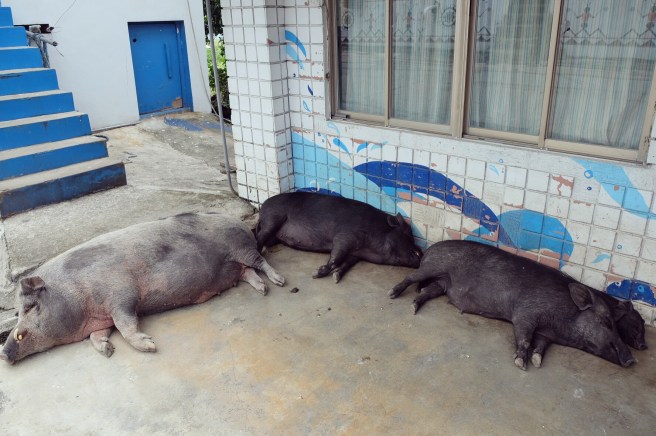 Salutiamo i genitori di Joshep da cui siamo stati ospiti per due notti e ci rimettiamo in sella. Decidiamo di allungare di parecchi chilometri e inerpicarci verso il monte Alishan – che mai raggiungeremo per il terrore delle folle turistiche del week end – e così facendo iniziamo a scoprire finalmente una Taiwan fatta non solo di cemento e capannoni intramezzati da campi di riso e allevamenti di maiali e polli.