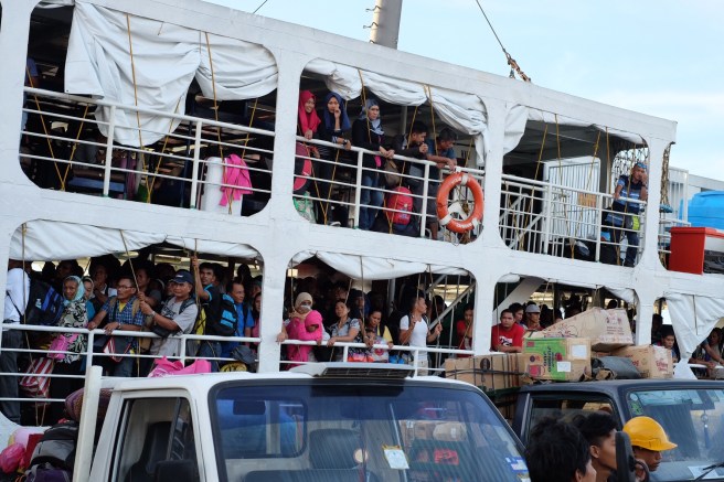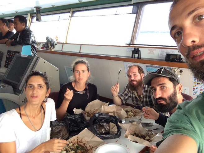 • Passare venti ore sulla Pantocrato, nave greca con armatore indonesiano di palesi origini cinesi che, vedendoci ammassati sui letti a castello, ci invita nella cabina di pilotaggio stappando una bottiglia di vino simil-aceto la sera e ci offre del gado-gado (mix di verdura con salsa di arachidi) a colazione!