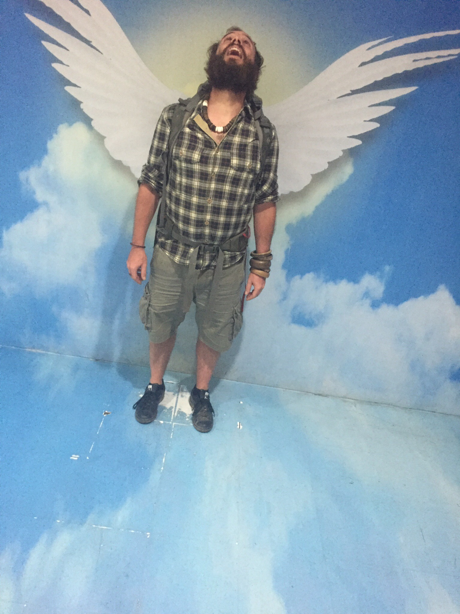 • Eccitamento collettivo per aver preso una suite per due persone ed esserci stati in cinque (tutto alla luce del sole!) pagando 13€ a testa e aver potuto così fare una doccia calda di lusso e depredare il buffet colazione. Non prima di aver scattato alcune foto geniali in un centro commerciale.