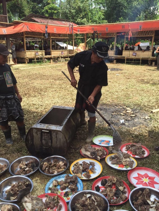Una volta racimolati tutti i soldi necessari, si invitano parenti e amici che porteranno probabilmente maiali da aggiungere al banchetto (e anche turisti, ai quali è chiesto di portare delle sigarette) e per due o tre giorni, all’ombra delle case tradizionali, si passerà pigramente la giornata a mangiare, mentre le bestie vengono sgozzate una dopo l’altra col machete.