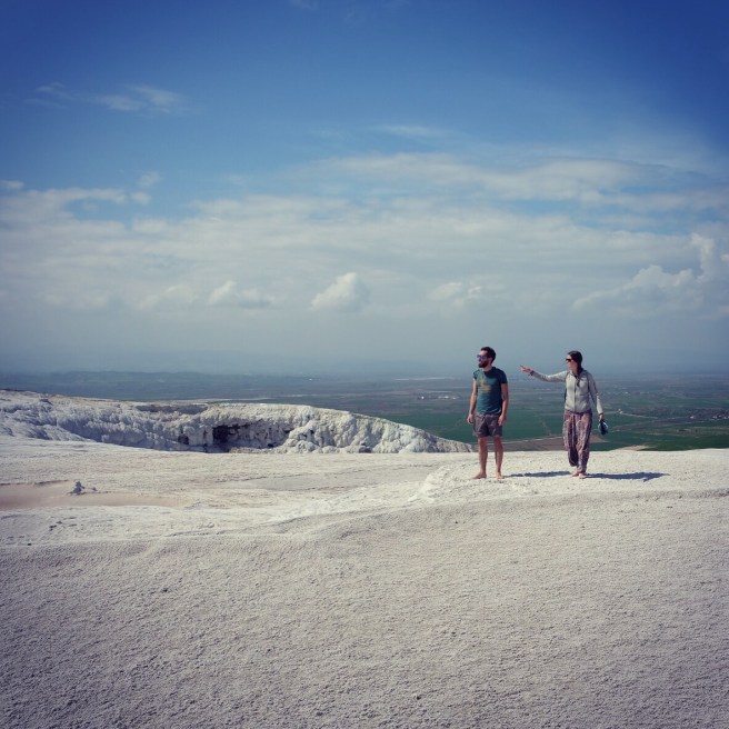 Immaginate di camminare a piedi nudi su un castello di cotone e incontrare in una pozza con una rana un ragazzo di Taiwan capace di cambiare i vostri piani. Pensate poi di non leggere i cartelli e finire sempre a piedi nudi su piccoli cavolfiori di travertino protetti dall’UNESCO mentre una guardia tarantolata sbraita e agita le braccia. Supponete poi di ritrovarvi a fare un pic-nic con una tartaruga su un tappeto di lumache. Dopodiché immergetevi in acqua frizzante alla piacevole temperatura di 36° e guardate con gli occhialini bollicine e colonne antiche. Terminate con un arcobaleno che vi accompagna all’uscita e provate a dirci che questa non è stata una giornata da sogno.