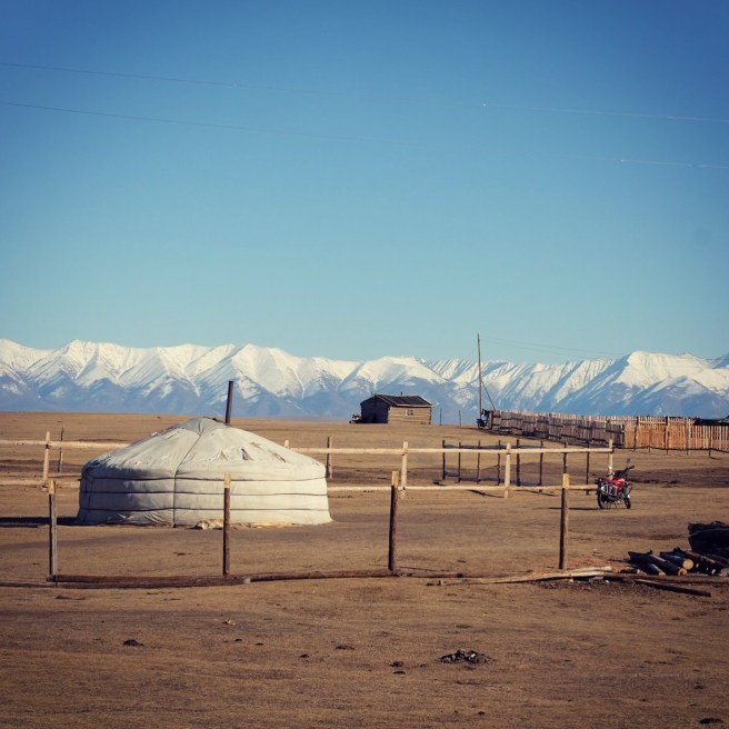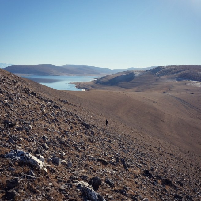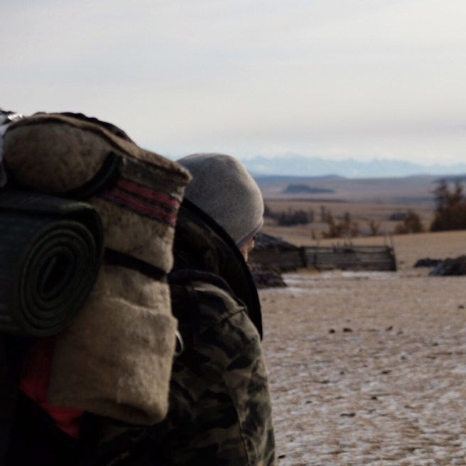 Partiamo col sole ma poco dopo il cielo si vela e, nonostante abbiamo addosso tutti i vestiti e le giacche a nostra disposizione – per farvi un idea: calzamaglia, pantalone tecnico aderente antivento, jeans e pantaloni in goretex, maglietta tecnica, maglietta in lana merino, due pile, piumino e le famose giacche di 4 kg di pelo di cui Bayarhu ci ha dotato – e il peso dello zaino ci faccia faticare, il freddo non ci molla un attimo. Solo dopo ventisei chilometri e sei ore di camminata no-stop arriviamo alla nostra agognata meta.