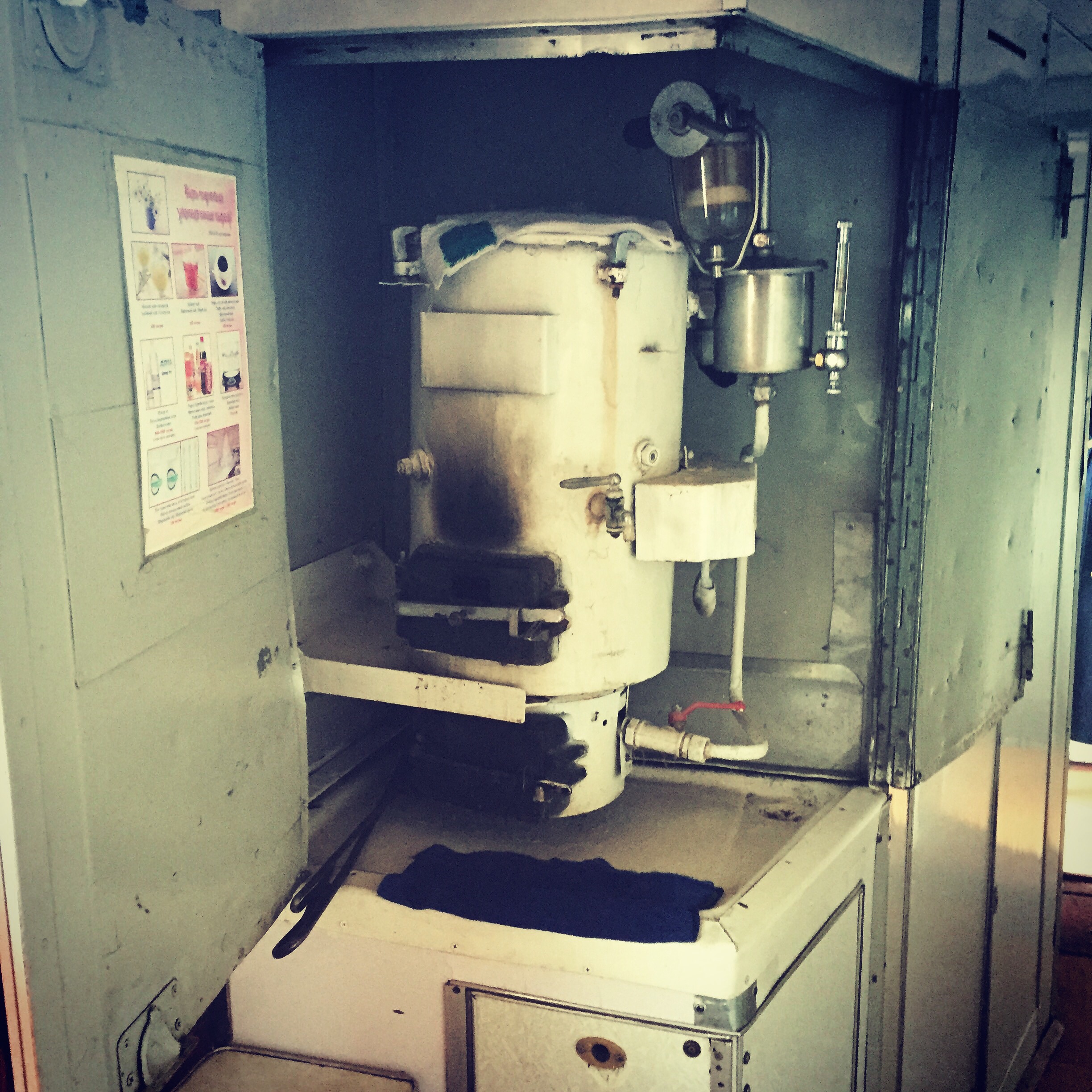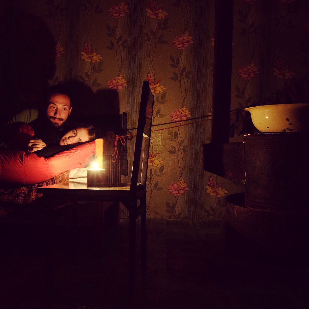 Il nostro patrimonio alimentare per questi giorni, invece, consiste in patate, una verza, cipolle e barbabietole, riso, pane, marmellata e del cioccolato. Iniziamo a preparare la cena e poco dopo arriva Ocerbat, traffica con una batteria collegata al piccolo pannello solare e accende una lampadina. Gli offriamo un po’ di minestra e lui carica la stufa con un quantitativo tale di legna che rimaniamo in maniche corte per tutta la durata della cena e ci addormentiamo belli caldi (da questo momento, sarà soprannominata “botta di calore Ocerbat” ogni momento di caldo estremo). Il risveglio invece è letteralmente da brividi. L’aria è talmente fredda da non riuscire neanche a respirare se non dentro il sacco a pelo ed a farci intuire la temperatura ci pensa il cilindro di ghiaccio dentro al secchio.