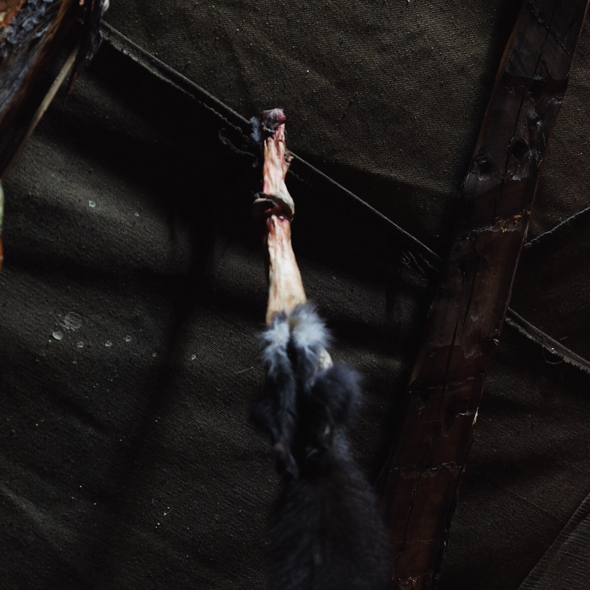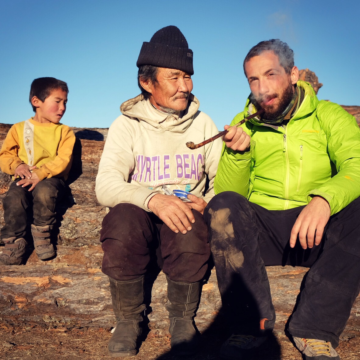 Con la pancia piena di borzog ed eccitati dal nuovo incarico (all’inizio pensavamo che ci dicessero di dover andare via) rientriamo in tenda per la quasi consueta minestra. Oltre ad Ocerbat e suo figlio (si, l’abbiamo scoperto anche noi in questo momento), ci sono due filettini di carne che sfrigolano sul coperchio della stufa: pensiamo che sia renna, invece è il risultato di una fortuita caccia all’ermellino. La pelliccia dell’animale perfettamente scuoiato – senza che muso, corpo o zampe si siano rovinati – penzola già all’interno della tenda. Stando a quello che abbiamo potuto capire, l’animale si era incautamente rifugiato su un albero e lui, per non farsi sfuggire l’occasione di mettere sul piatto un po’ di proteine, ha risvegliato in un attimo il suo istinto e ha colpito l’animale lanciando un ciocco di legno. Difficile immaginare il pacato e quasi svogliato Ocerbat in una veste così scattante!