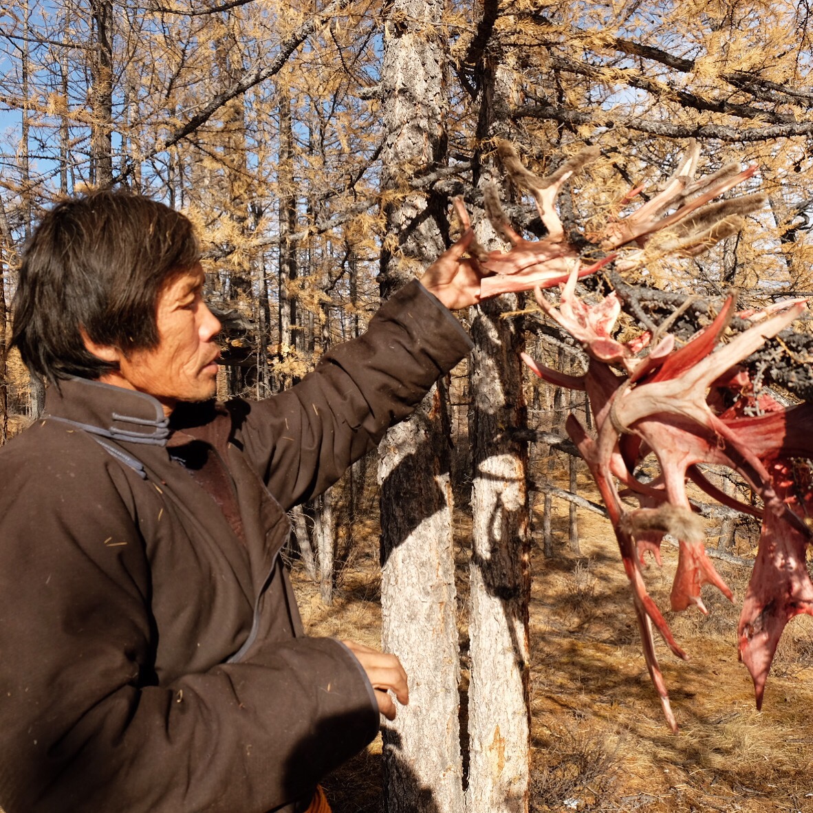 Gli Tsaatan hanno inoltre l’accortezza di stringere uno spago alla base della parte di corno che verrà segato per evitare l’afflusso del sangue nel velluto. I cani infine assistono impazienti a questa operazione perché sanno che il velluto staccato dalle corna fresche di taglio spetta a loro: niente viene sprecato!