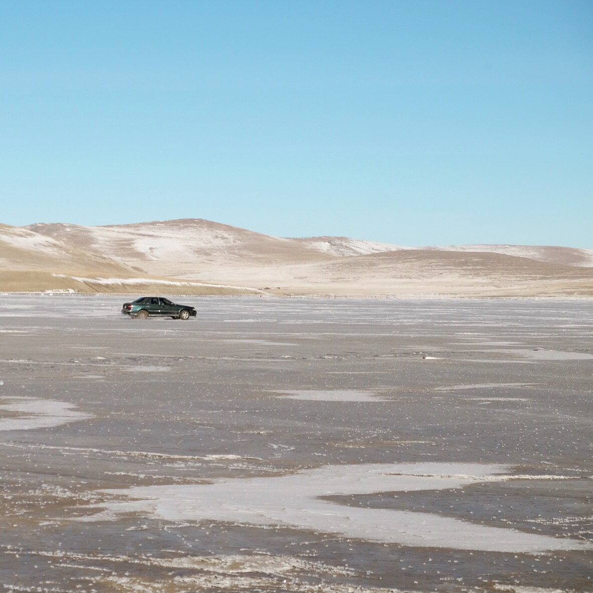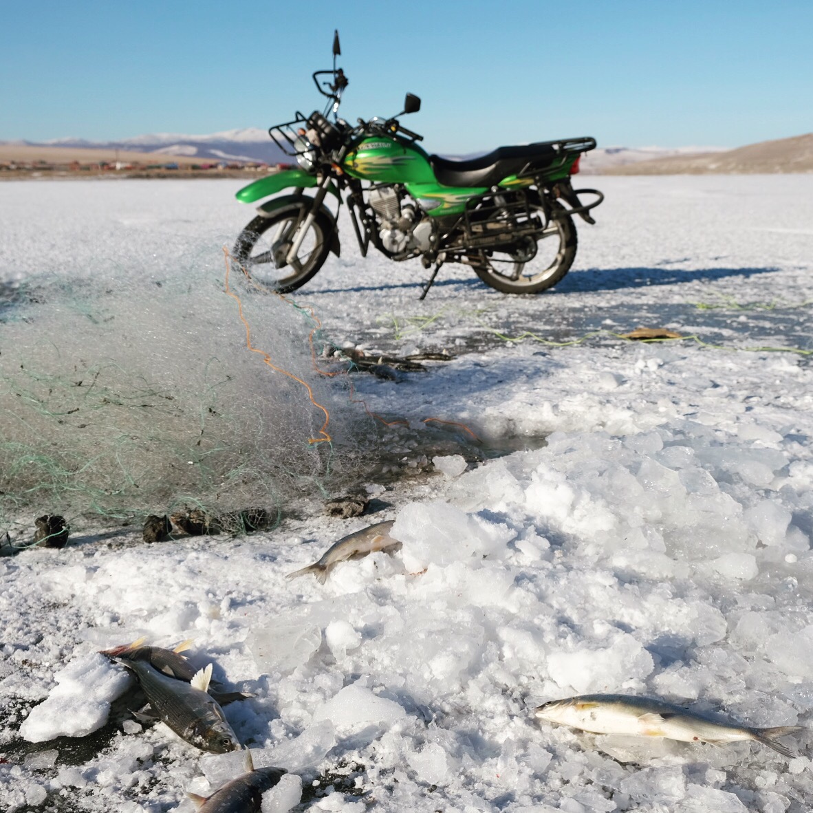 Bayarhu ci accoglie stupito, non riesce a credere che siamo tornati a piedi dalla taiga correndo il rischio di farci attaccare dai lupi (noi a dire il vero non sapevamo di questo pericolo) e subito ci accende la stufa. Le nostre quattro mura ci ora sembrano più familiari che mai. Per i giorni a seguire, ogni mattina sua moglie ci porterà un piatto con due pesci e del riso, forse anche lei ha letto la fame nei nostri occhi! A proposito di pesci! Andiamo alla ricerca di Gambat, il fumatore di pipa che ci aveva invitato a pescare. Bussiamo alla sua porta ma la moglie ci fa segno di andare a cercarlo sul lago. Muovere i primi passi sulla superficie ghiacciata da soli non è rassicurante e mano a mano che ci si allontana dalla costa la sensazione peggiora. Pur vedendo in lontananza diversi gruppi di pescatori e addirittura un furgoncino che passa indisturbato, i rumori indescrivibili che gli enormi blocchi di ghiaccio fanno stritolandosi tra loro ci fanno sentire sul filo del rasoio.