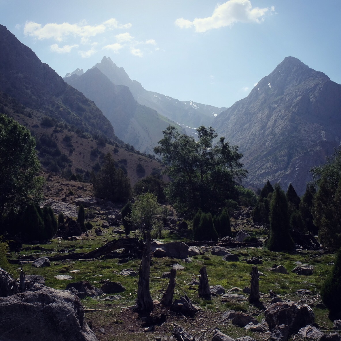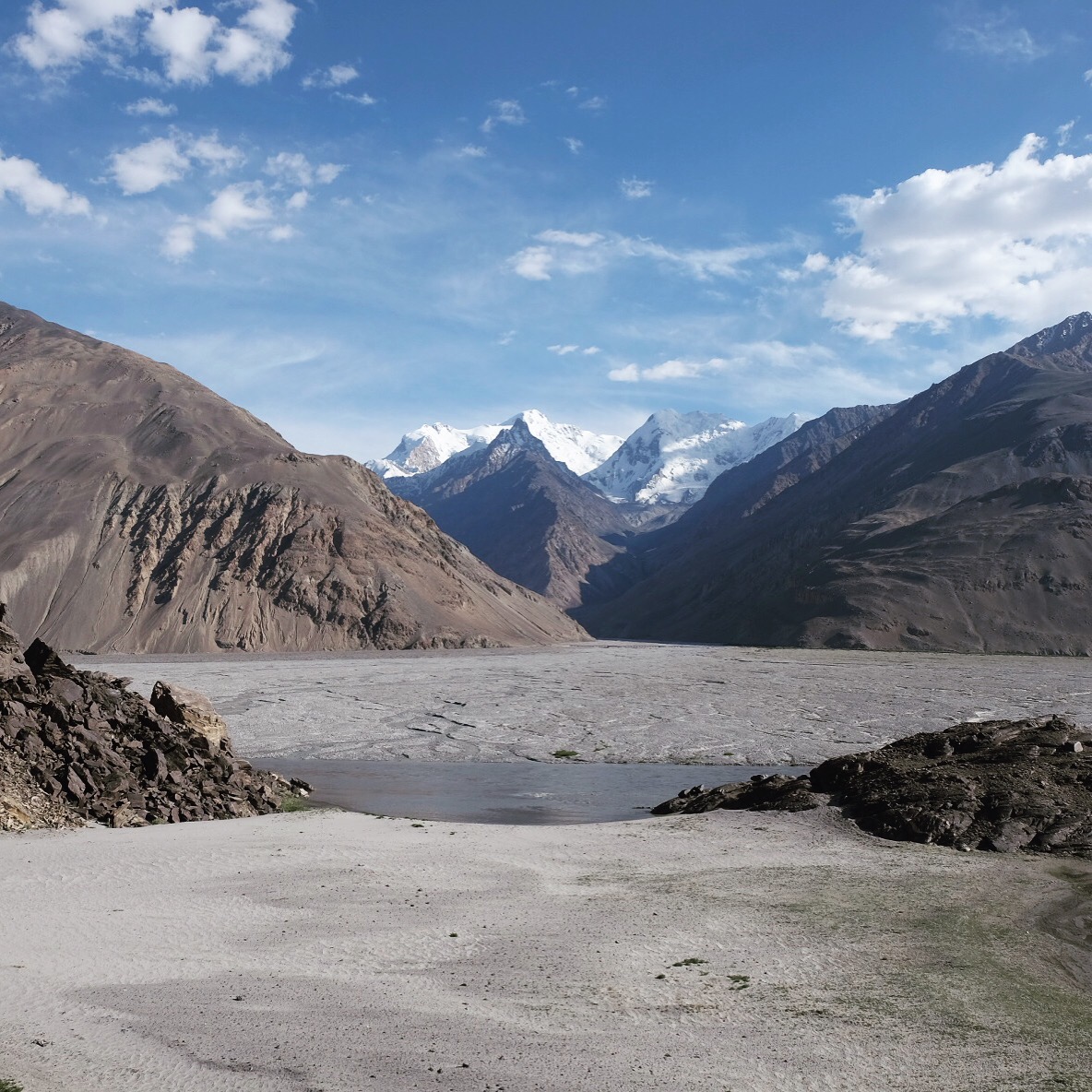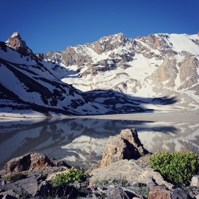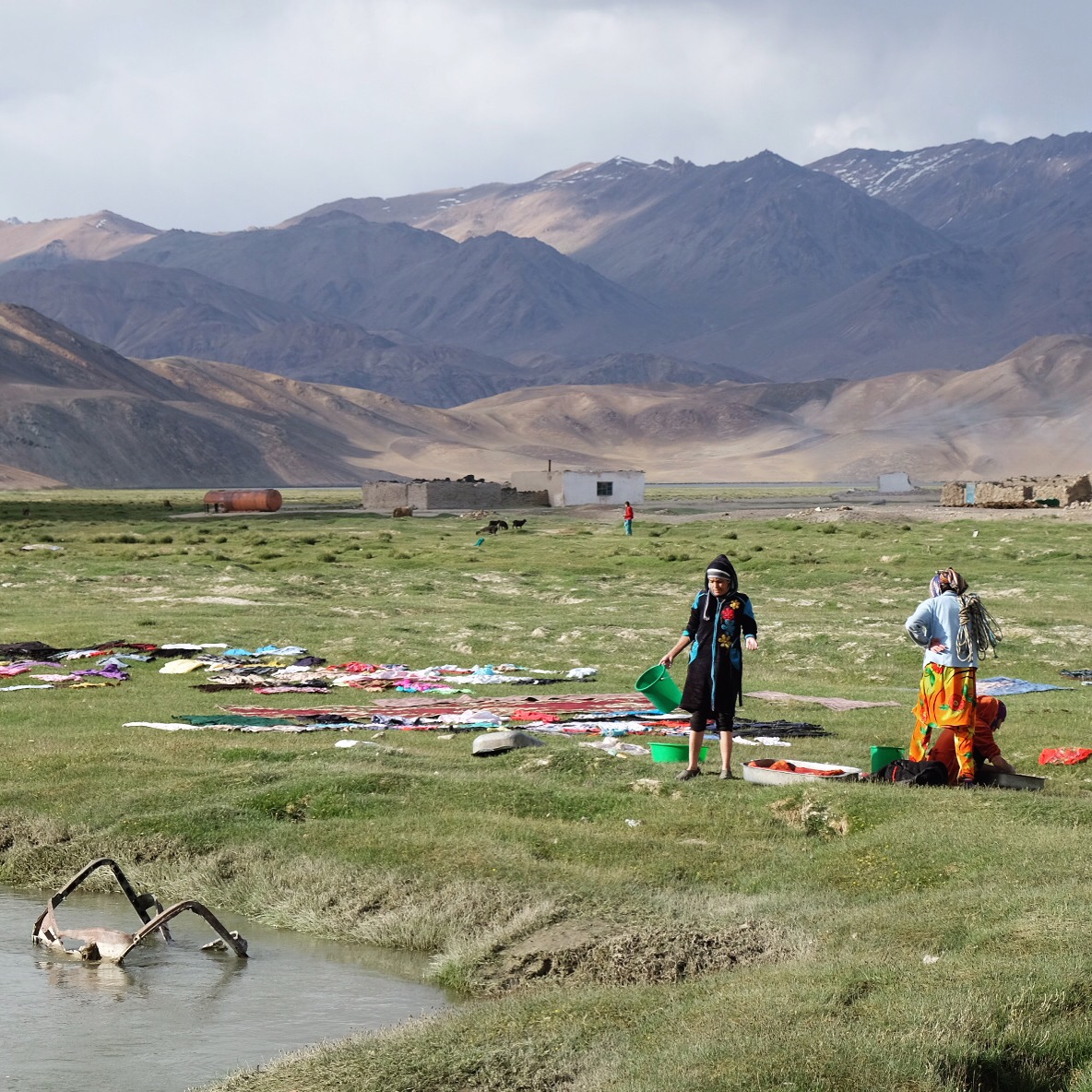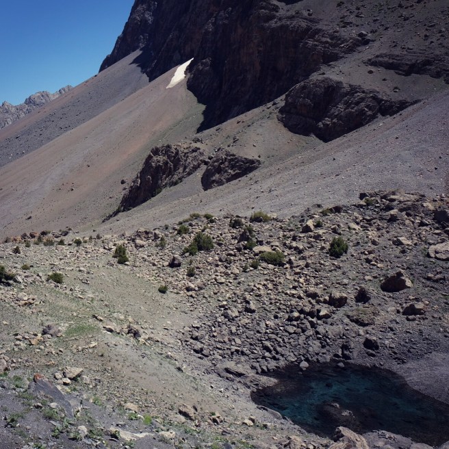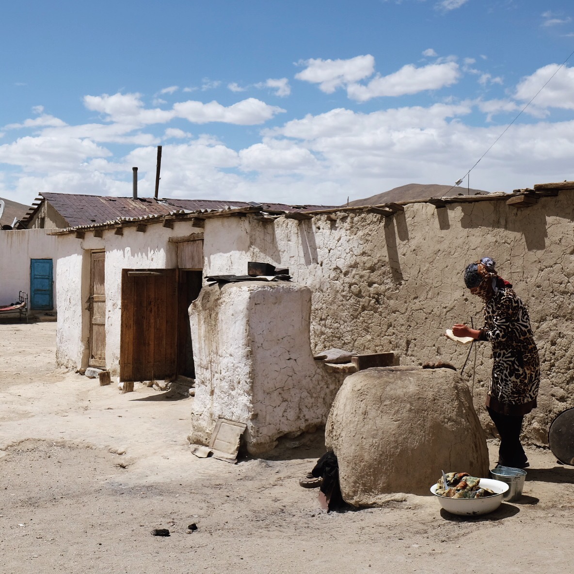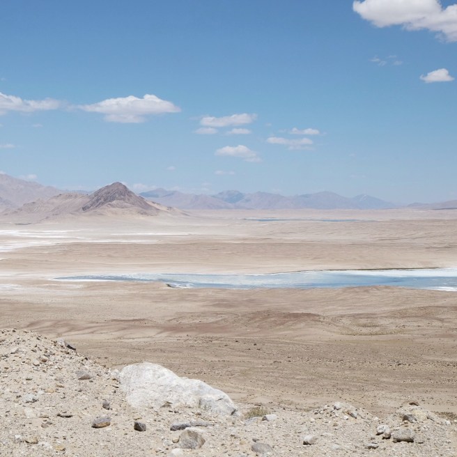 Siamo piccoli. Spettatori increduli dell’aspra bellezza di questo tetto del mondo. L’altitudine mozzafiato non fa dormire e ogni passo costa fatica. Il sole non lascia scampo, la pelle del Pamir è spessa e bruciata. Il ragliare disperatamente sgraziato degli asini risuona di continuo. L’acqua onnipresente scorre in ruscelli bucolici, in tumultuosi torrenti, in fiumi in piena, si ferma in laghi dai colori sorprendenti, ribolle nella terra ma scarseggia nelle case. Polverosa, torbida e ferrosa, a volte salata, pare che nessuno abbia l’esigenza di berla, viene usata per fare il tè e messa in secchi per lavarsi. Le verdure sono un lusso, la frutta un sogno esotico, la carne centellinata e usata quasi come guarnizione del piatto. Difficile pensare alla vita invernale in questo ossimoro di deserti e ghiacciai.
