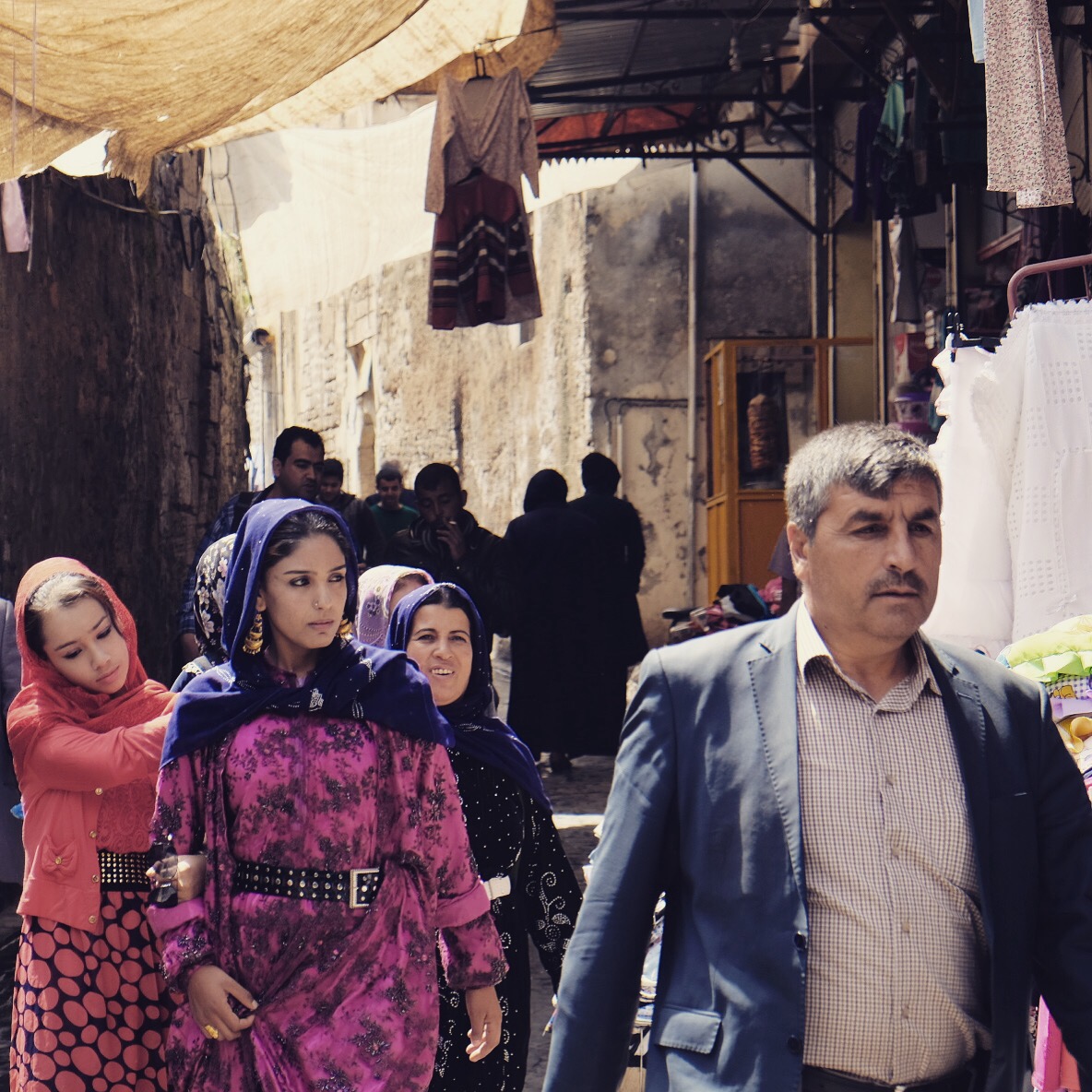 Il viola è il colore della fertilità e gran parte delle donne curde porta il velo di questo colore. Sempre nel sud est è tradizione per le anziane portare un velo bianco.