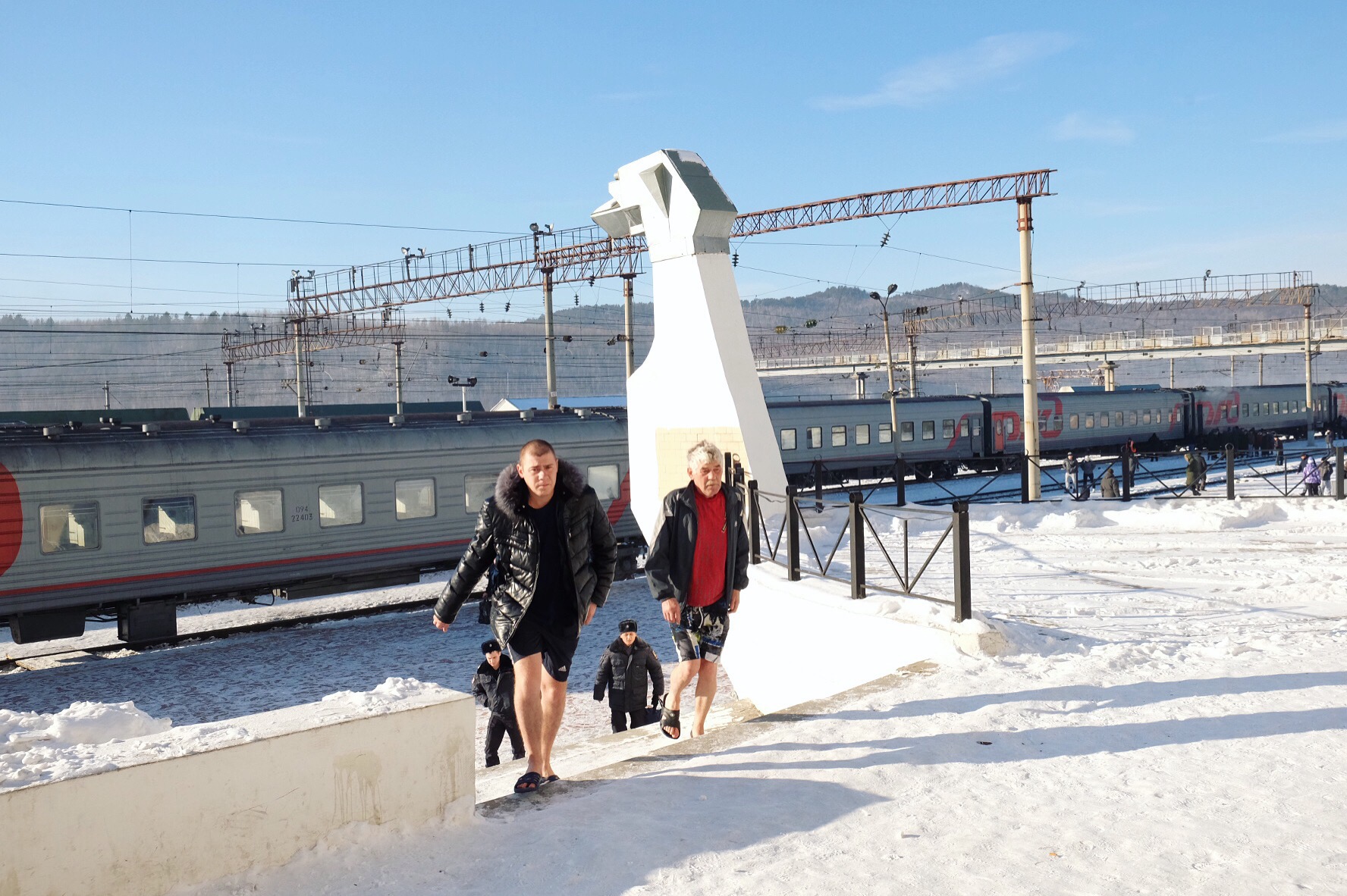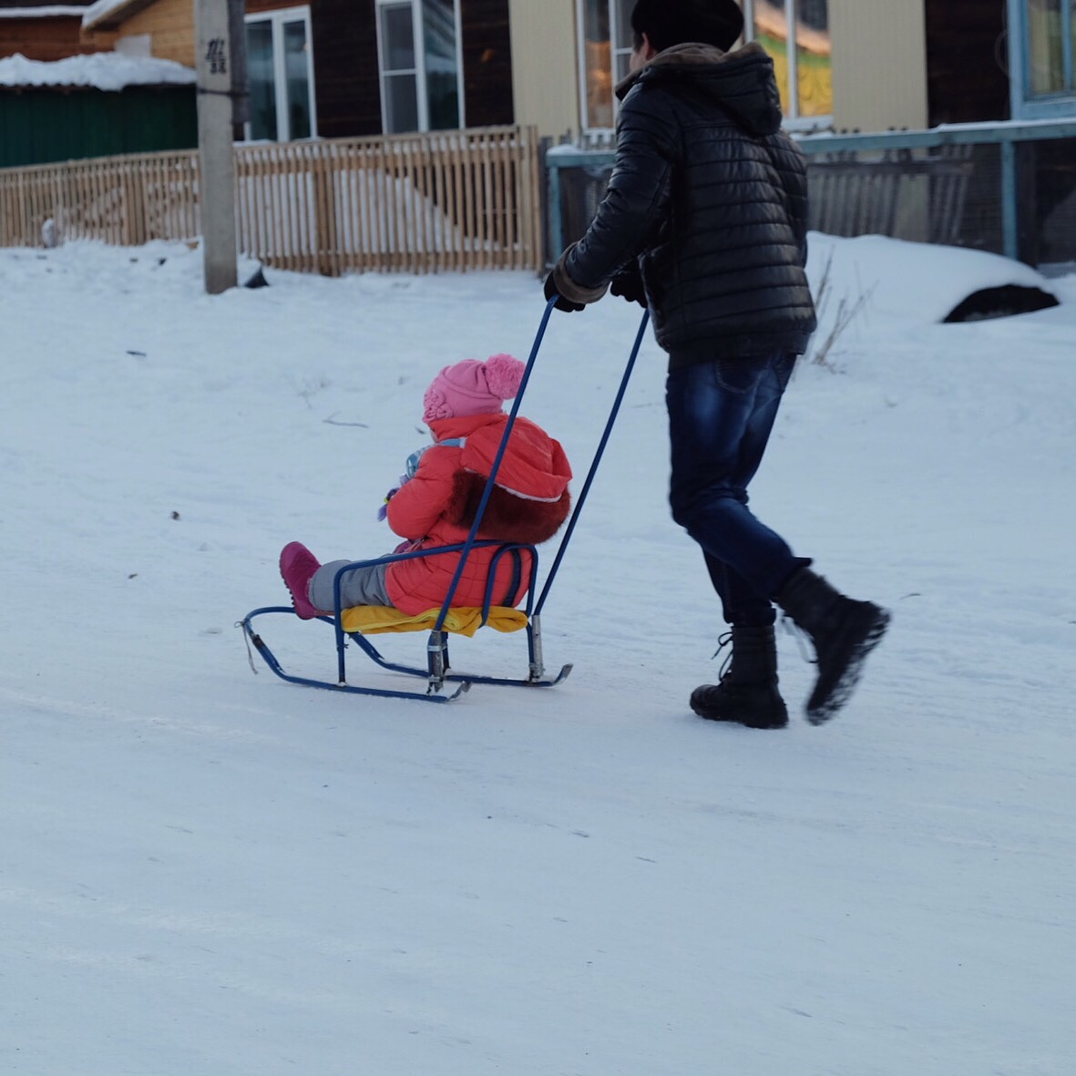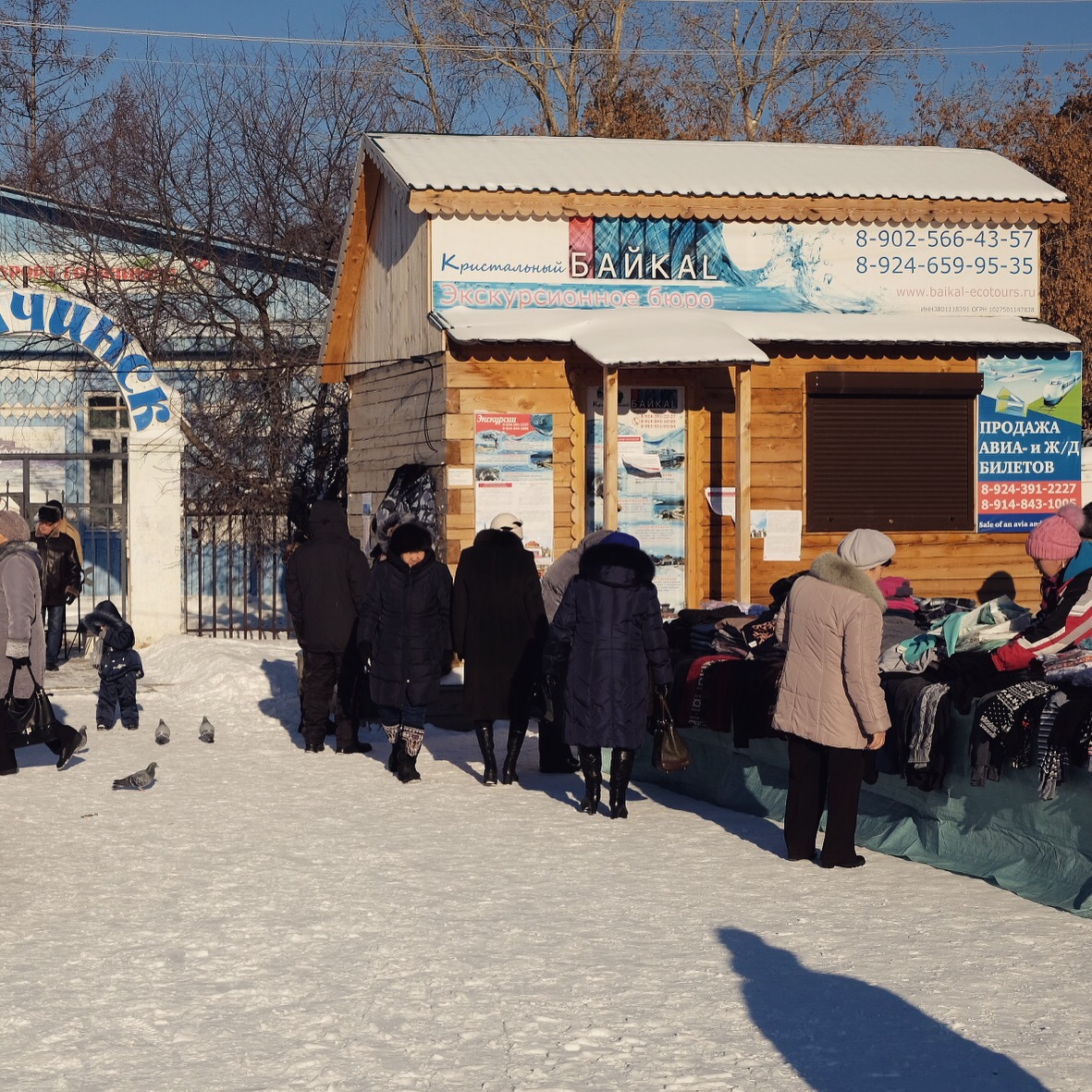 Noi per mancanza di tempo e linearità dello spostamento (non sopportiamo l’idea di fare avanti e indietro sulla stessa strada) decidiamo di dar retta ad un veloce consiglio datoci via email da un membro di couchsurfing di Ulan-Ude (la città più fredda dove siamo mai stati) e andiamo sulla costa est, precisamente a Goryachinsk, senza sapere che ci saremmo imbattuti in un villaggio di casette di legno costruito intorno ad un’importante sorgente termale. La stazione di Ulan-UdeLe strade di GoryanchiskLa bancarella nel centroLa camminata verso il lagoUno dei tanti uccellini tutt’altro che impauriti (cinciallegre?)Pescatori in lontananza