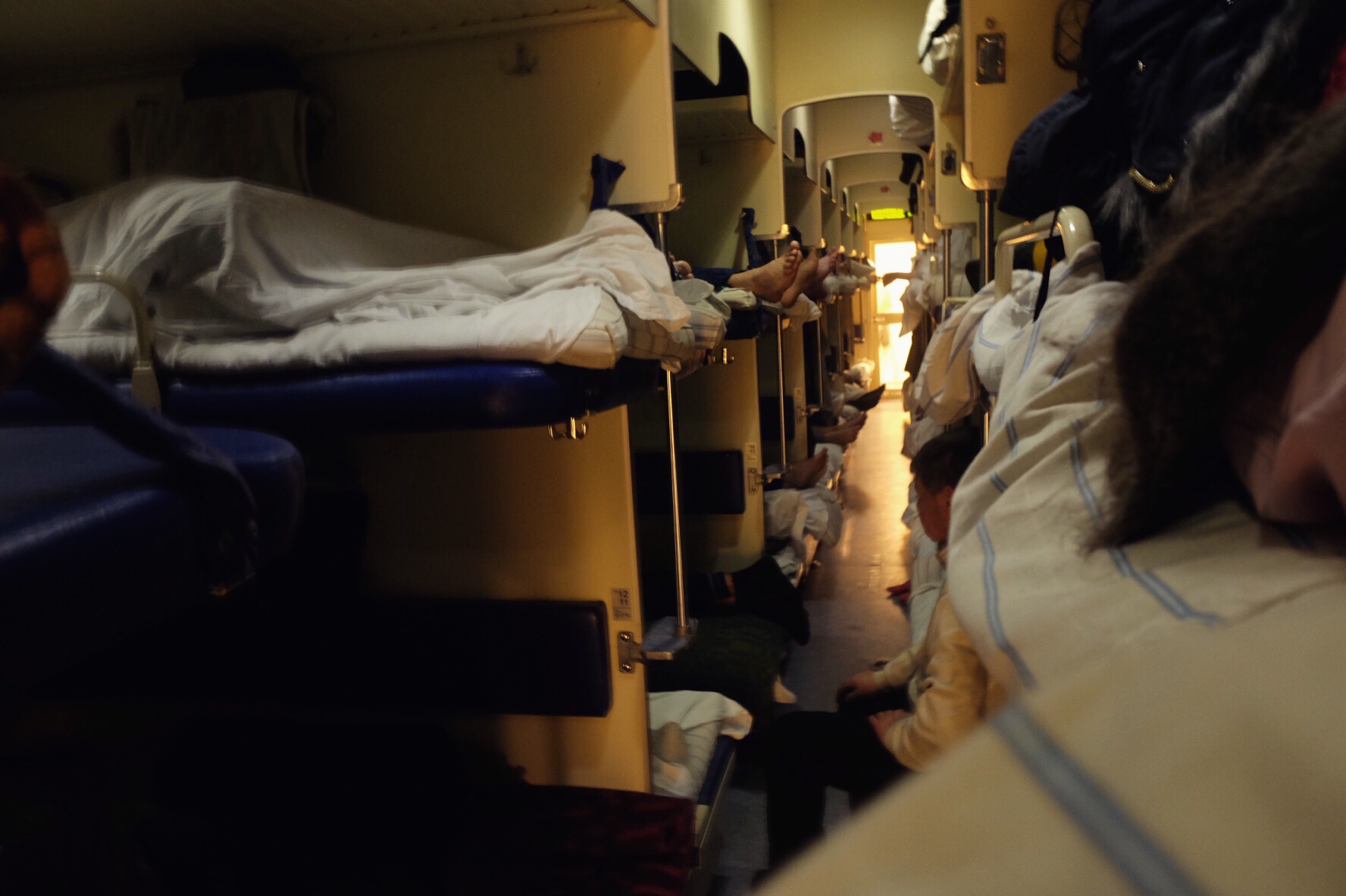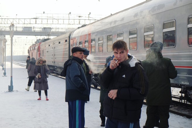 Abbiamo passato tre notti e tre lunghi giorni relegati ad un letto nel posto corridoio, senza un minimo di privacy e spostando i piedi o le spalle per l’andirivieni continuo del mezzo vagone di militari odorosi (nel senso pieni di odori) che facevano spola verso la terra di mezzo dove, previa la corruzione della responsabile del vagone, era possibile fumare. Sì perché ogni carrozza ha una sorta di hostess, che nulla ha che vedere con l’immaginario comune: senza sorrisi e corpo longilineo, il mastino supervisiona sulla pulizia e sull’amministrazione di posti e coperte e, probabilmente per arrotondare, obbliga all’acquisto di qualche gadget – con un piccolo sovrapprezzo – chiunque necessiti di un favore extra. Se a tutti i militari sono state vendute delle tazze per poter fumare una sigaretta, a noi è toccato un pupazzetto per poter sfruttare un angolino del frigorifero e conservare uova sode, formaggio e cetrioli.