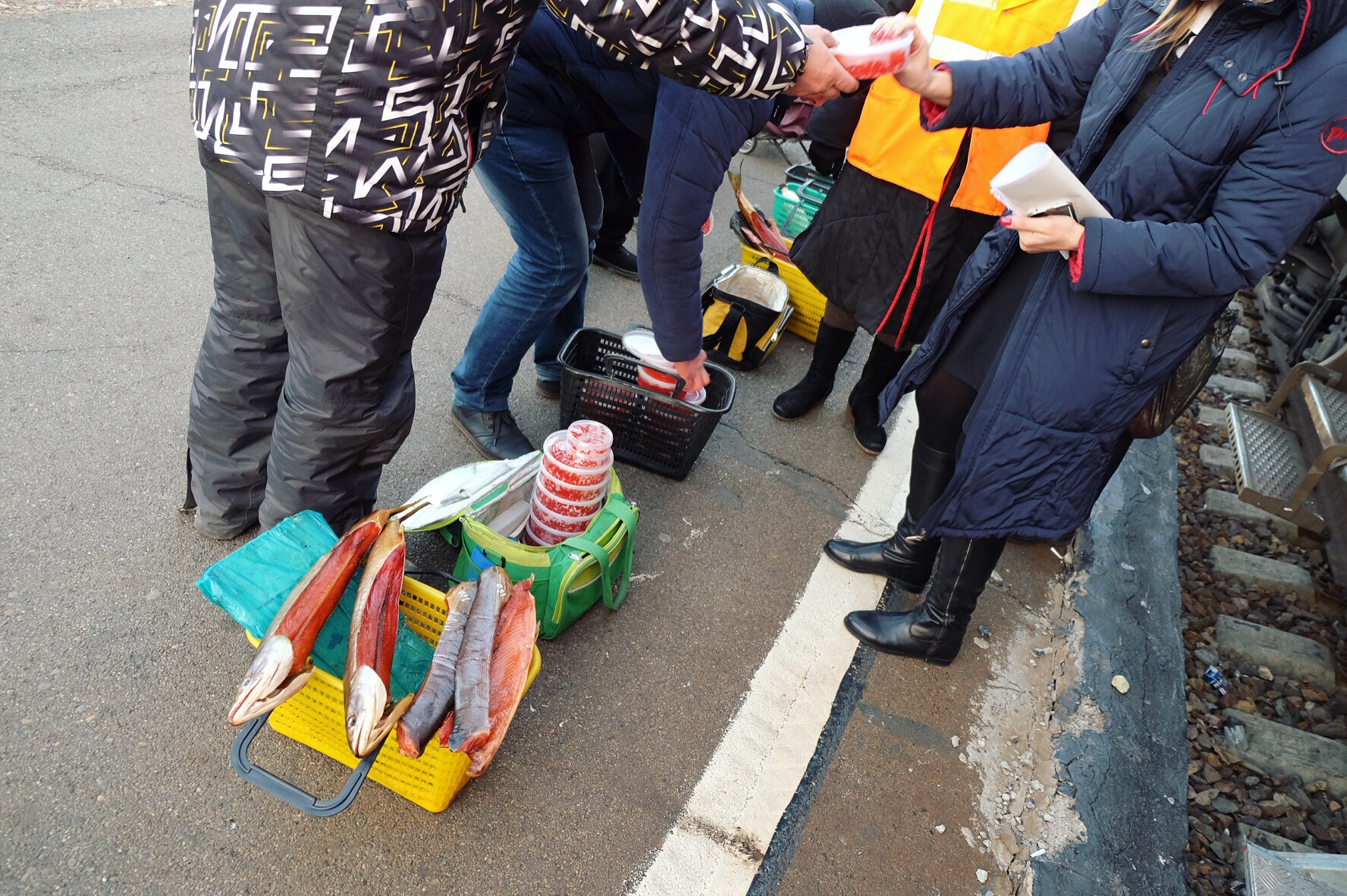 Le brevi soste durante le quali è possibile scendere dal treno servono per rimpinguare le scorte o sgranchirsi le gambe. Sui binari è facile trovare venditori ambulanti di pesce essiccato o uova di pesce, oppure panzerotti fritti.