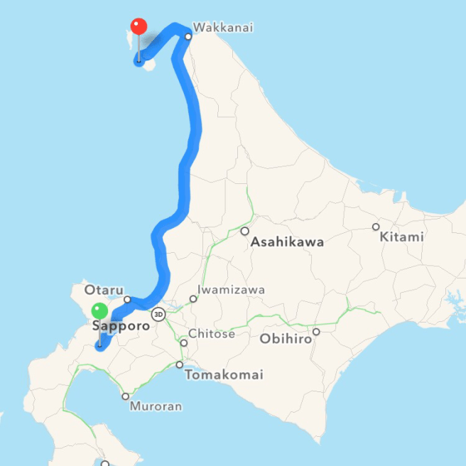 Finestrini abbassati nonostante le temperature e si parte. Verso Nord. Più esattamente Rishiri Island. All’inizio non ne sapevamo pronunciare nemmeno il nome – era stato un consiglio dato all’ultimo dall’amico giapponese Ibasan – ma il fascino suscitatoci da questo vulcano in mezzo al mare ci ha spinto a correre giorno e notte lungo una strada costiera spazzata da neve e vento e riparaci per un breve riposo nel porto di Wakkanai in attesa del traghetto.