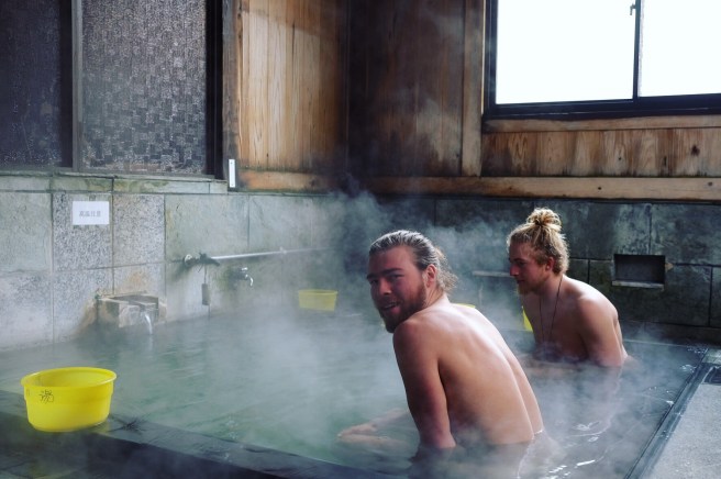 Ci siamo fermati campeggiando due notti nel paesino di montagna Nozawa Onsen, un villaggio con ben tredici bagni pubblici gratuiti. Tre immersioni quotidiane ci hanno permesso di mantenere una piacevole temperatura corporea durante il nostro vagabondare.