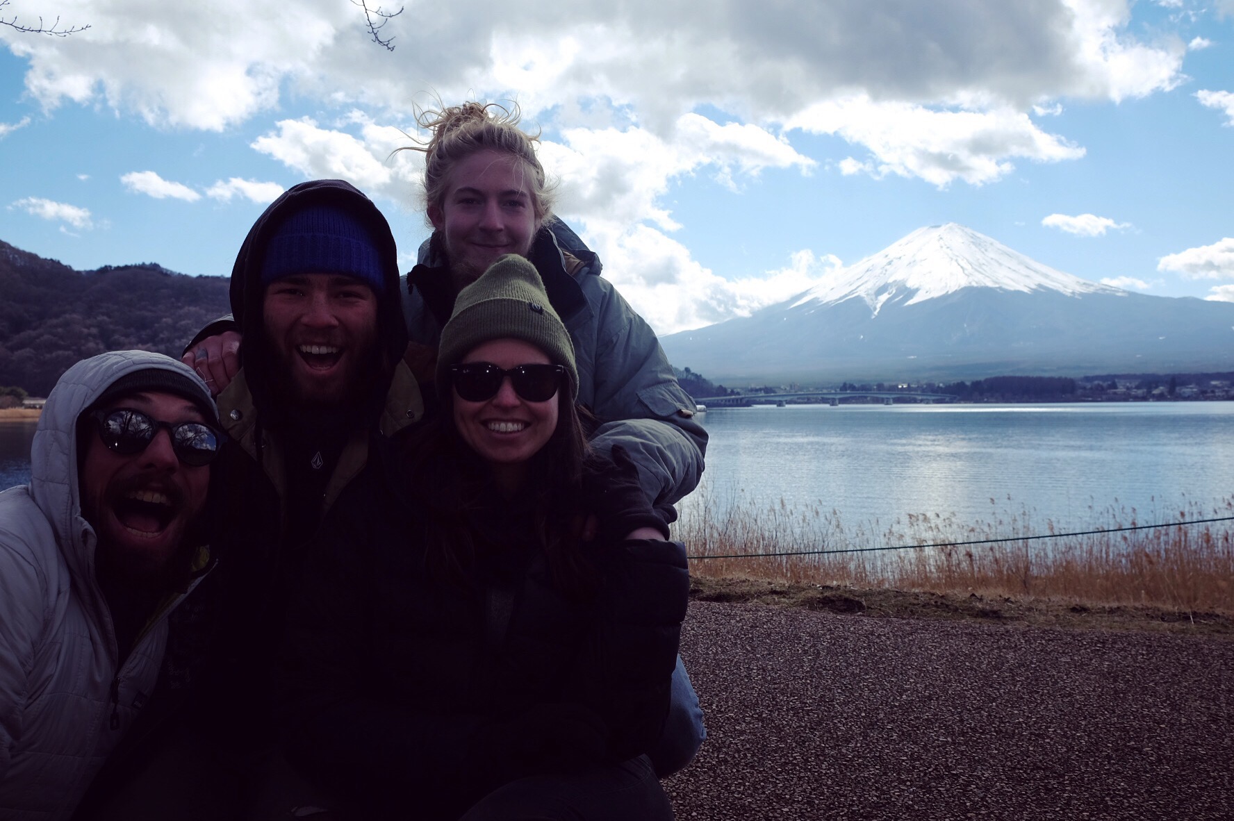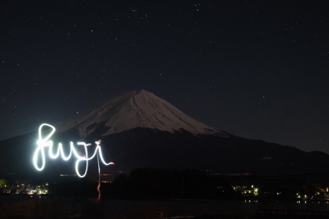 Quando siamo arrivati sotto il monte Fuji, con un tempo talmente infame che ci impediva persino di capire da che parte avrebbe dovuto svettare, prima che montassimo la tenda un vento miracoloso ha spazzato via nuvole e neve e dopo poco siamo riusciti a vederlo in tutta la sua bellezza.