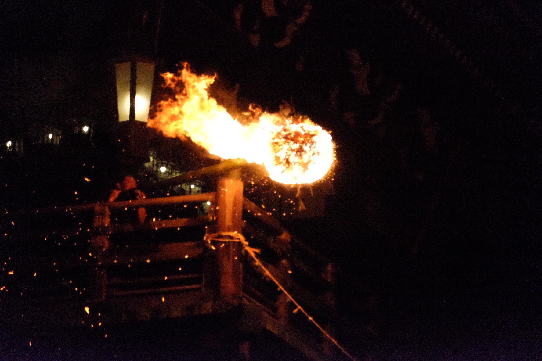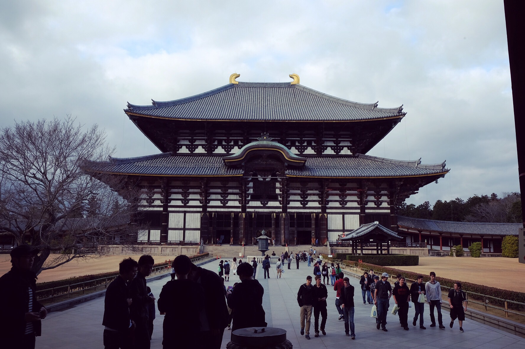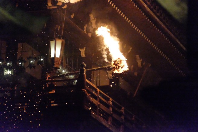 Nara, tempio buddista Todai-jiIl parco pubblico di Nara (nostra dimora per tre notti), abitato da cervi tutt’altro che timidi.Otaimatsu: questo il nome dell’evento che si tiene sui balconi del Nigatsu-do (un edificio facente parte del tempio Todai-ji). Appena dopo il tramonto vengono portate in sequenza da una parte all’altra del balcone una decina di enormi torce che bruciando provocano una pioggia di braci e zampilli la cui visione, secondo la credenza, porterebbe fortuna per il nuovo anno.Sul balcone del Nigatsu-do, aperto al pubblico dopo aver spento le torce
