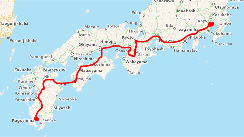 Impossibile raccontare per filo e per segno tutto quello che abbiamo vissuto percorrendo i 1400 chilometri che separano Tokyo da Kagoshima, ma ci siamo sentiti in un vortice fortunato. Spostandoci in autostop e campeggiando in qualsiasi fazzoletto d’erba ci si presentasse innanzi – e avendo avuto di conseguenza poche occasioni per impigrirci – abbiamo girovagato con e senza una meta precisa per più di un mese.