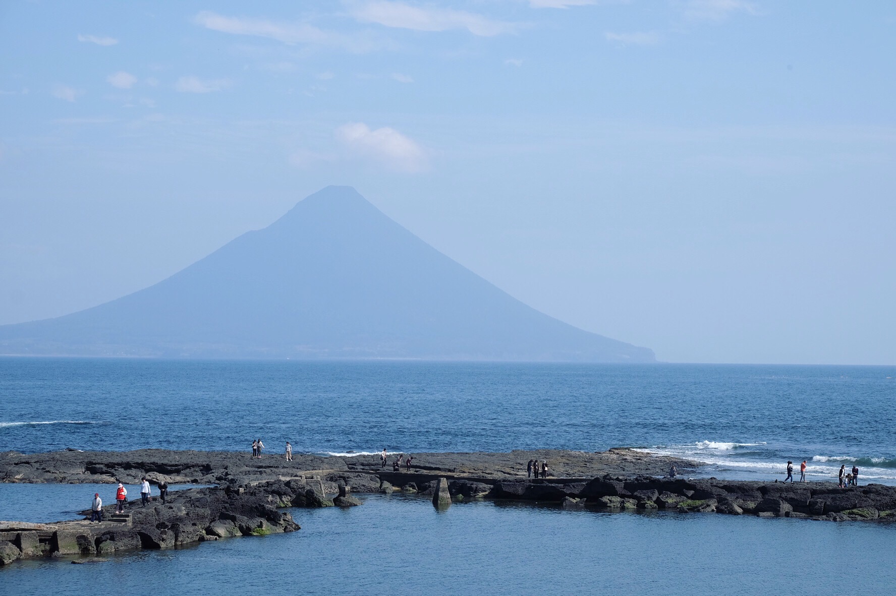 Tamatebako Onsen (Ibusuki, Kyushu) con un rotenburo dalle acque salate e con vista sull’oceano e sul vulcano Kaimondake.