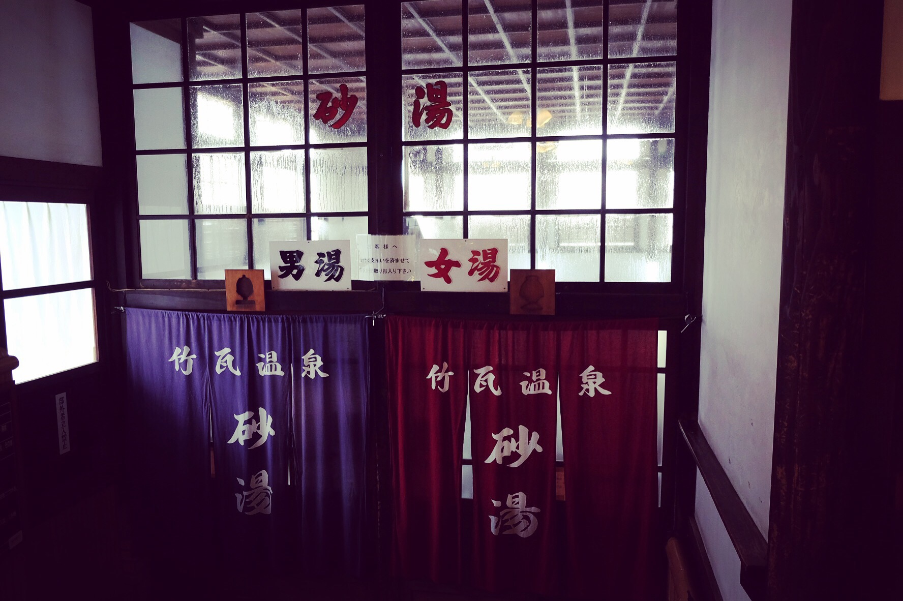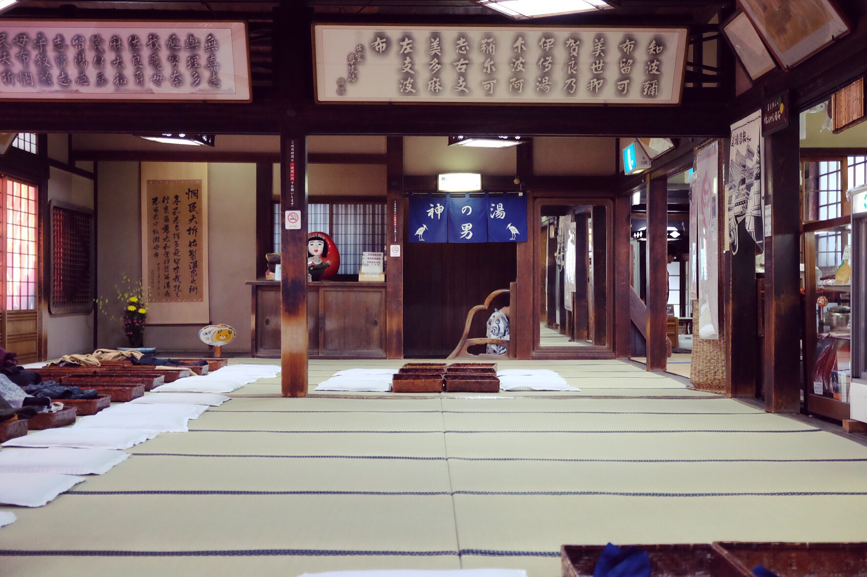 Classico ingesso all’onsen: in questo caso uomini a sinistra e donne a destraLo spogliatoio del Seiryuusou Onsen