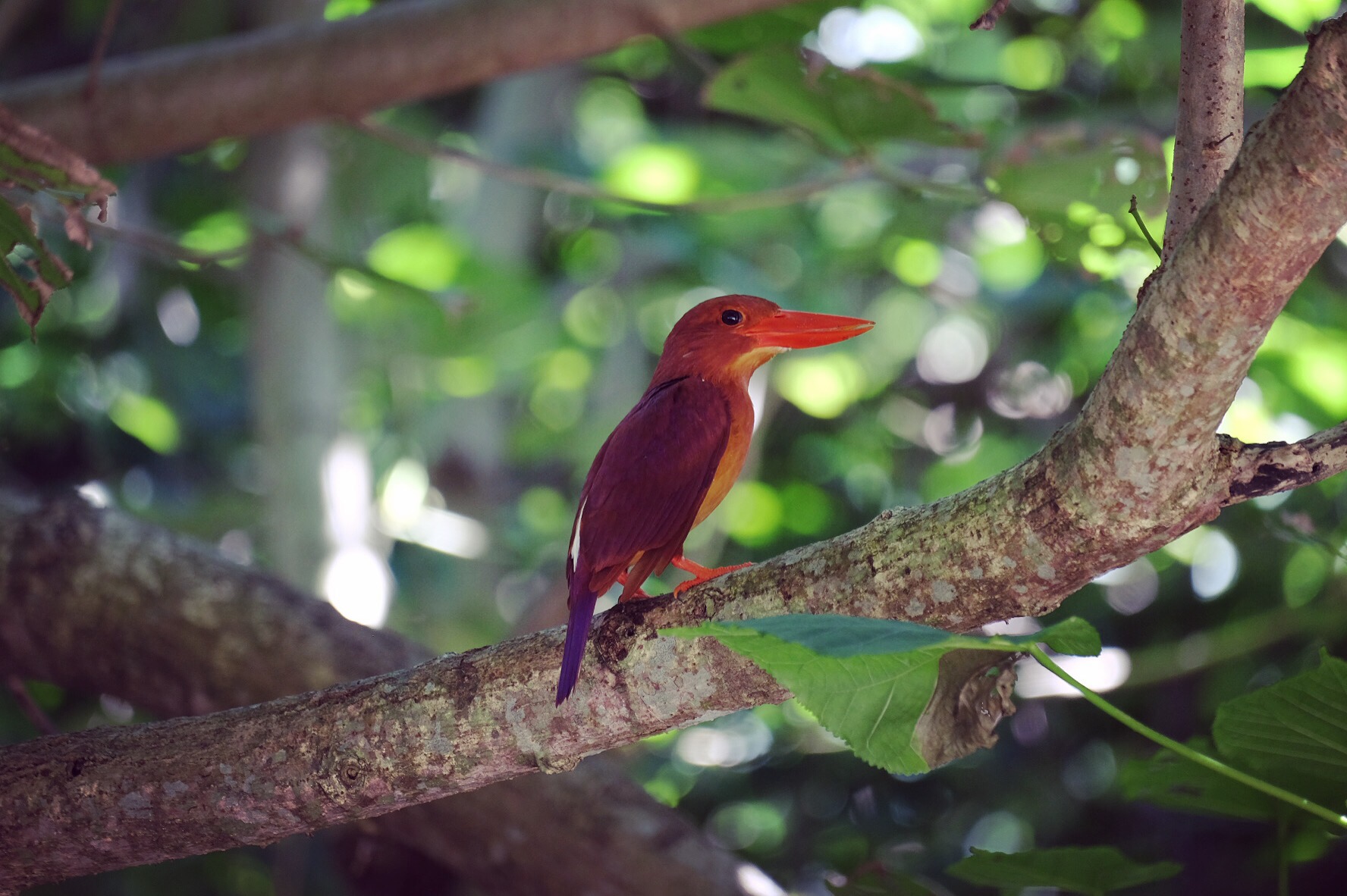 Scopriremo poi che siamo nel pieno della stagione delle piogge – meno male non quella dei monsoni – e che l’urlo dalle curiose scale melodiche è il richiamo del piccione verde che si sposta mimetico nella giungla. Ma non è l’unica nostra sveglia: con le prime luci dell’alba echeggia una risata sonora, con un lieve accento diabolico e una scarica di mitragliatrice. È il martin pescatore, che vola veloce e sicuro effettuando millimetirche traiettorie a filo di rami stile stukas, arrivato in questi giorni sulle isole lungo la sua rotta migratoria. Anche i corvi si guardano bene dal farsi trovare sulla sua strada: quel ghigno e soprattutto quel becco non perdonano.