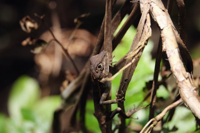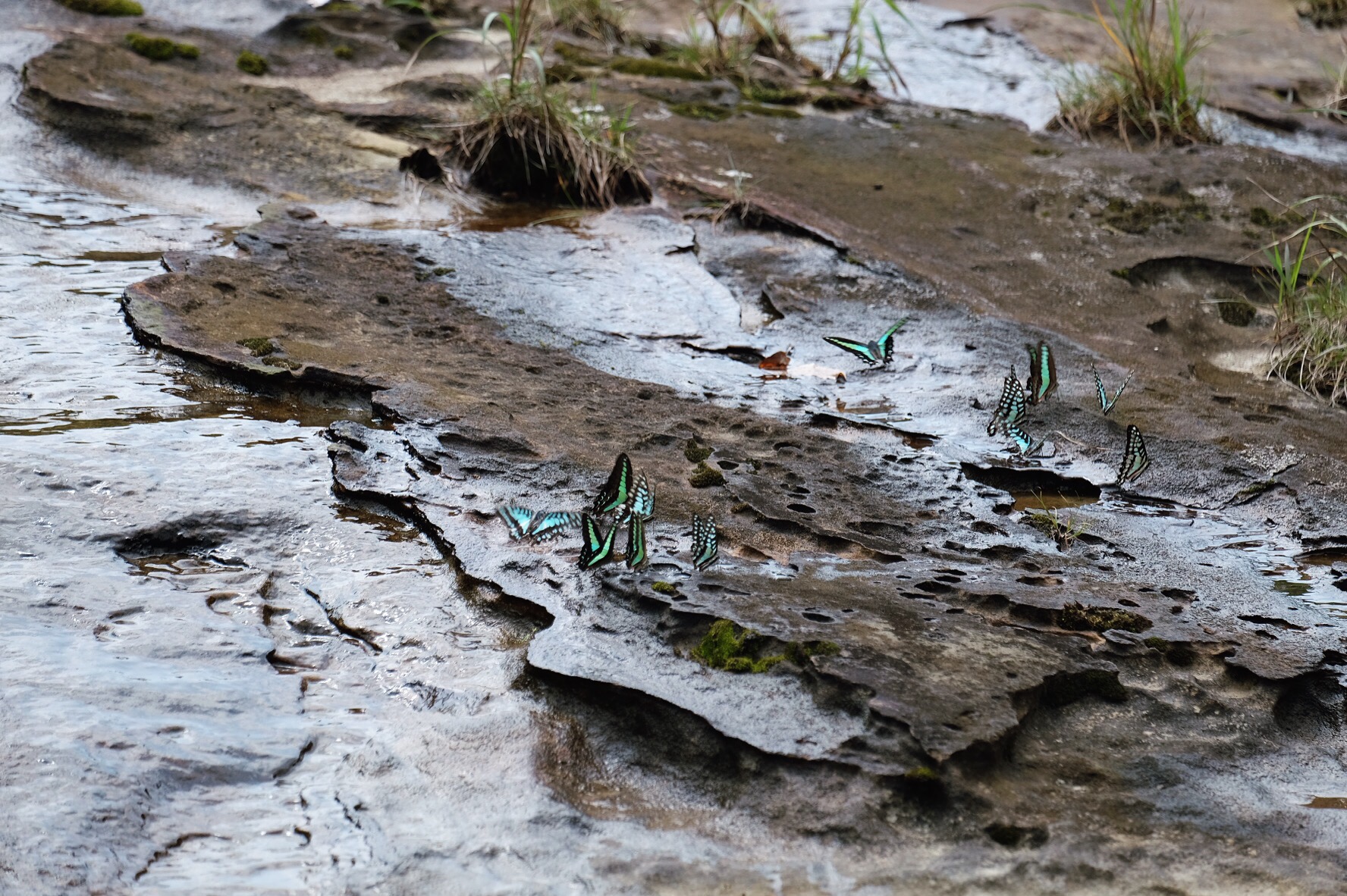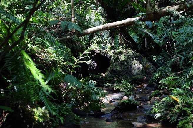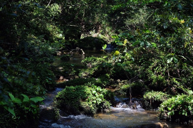 Abbiamo portato solo l’indispensabile nello zaino, faremo infatti tre notti di free-camping prima di intraprendere il trekking in mezzo alla giungla che taglia l’isola da nord a sud. Il sentiero è ben segnalato con dei nastri fuxia, ma pare che parecchie persone si siano perse e per questo è necessario recarsi all’ufficio di polizia per ottenere un permesso. Prendiamo la prima imbarcazione delle 9.30 che risale il fiume Urauchi che si addentra nella foresta e in mezz’ora arriviamo all’inizio del sentiero. Da qui per otto ore saremo immersi in una vegetazione fittissima intermezzata da cascate e guadi, mangrovie e fango, circondati da mille farfalle e accompagnati da lucertole dalla coda blu o dalla pancia gialla, rane saltellanti e fortunatamente nessun serpente velenoso.Risalendo il fiume UrauchiLa cascata Maryiudo