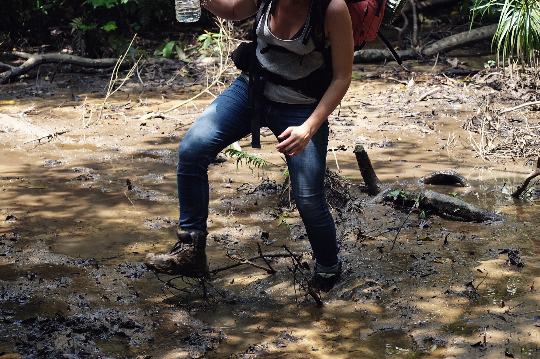Camminata tra le mangrovie con la bassa marea per proseguire poi nel sentiero che conduce alla cascata Pinaisara(sullo sfondo)