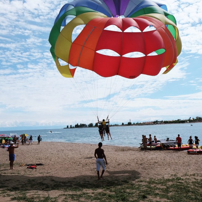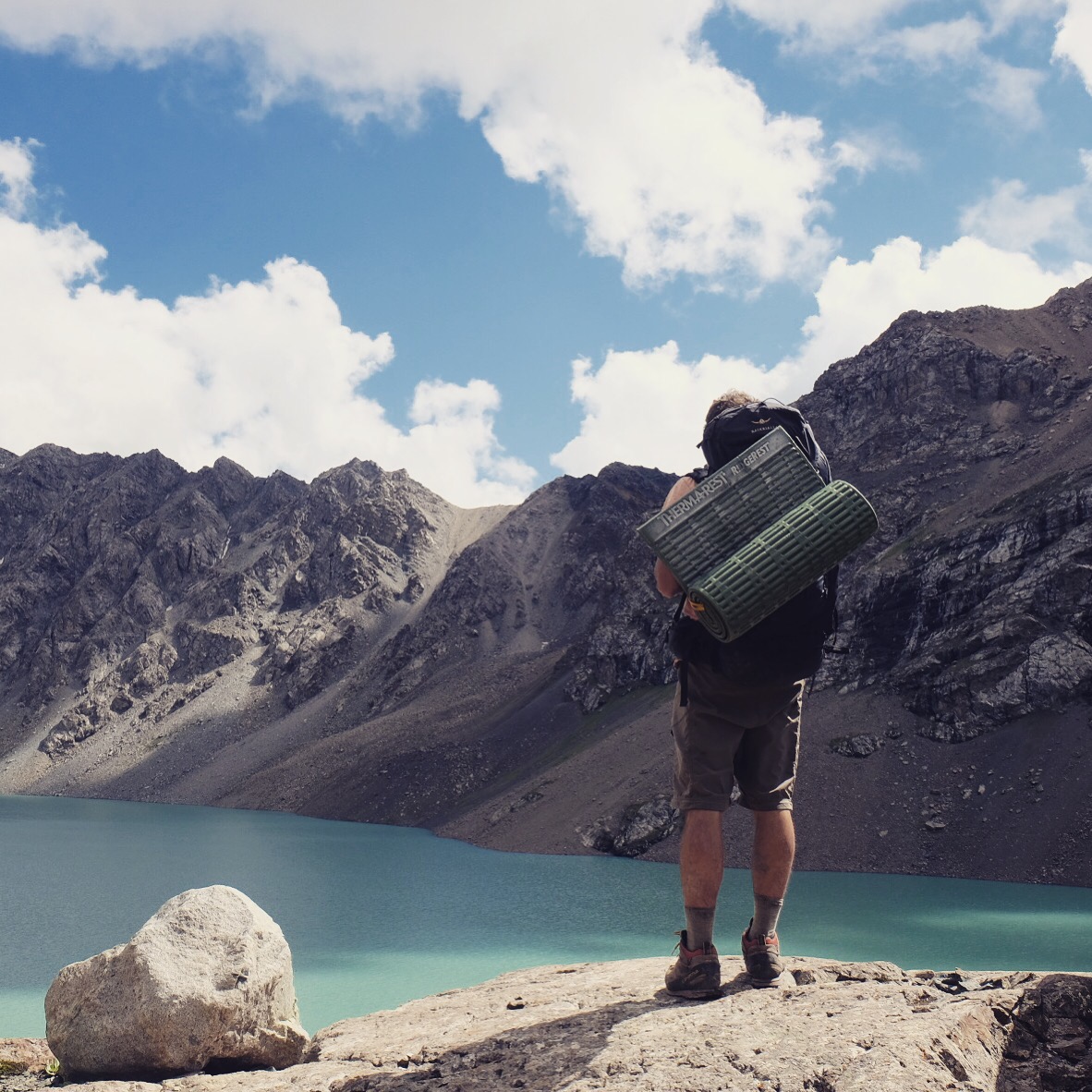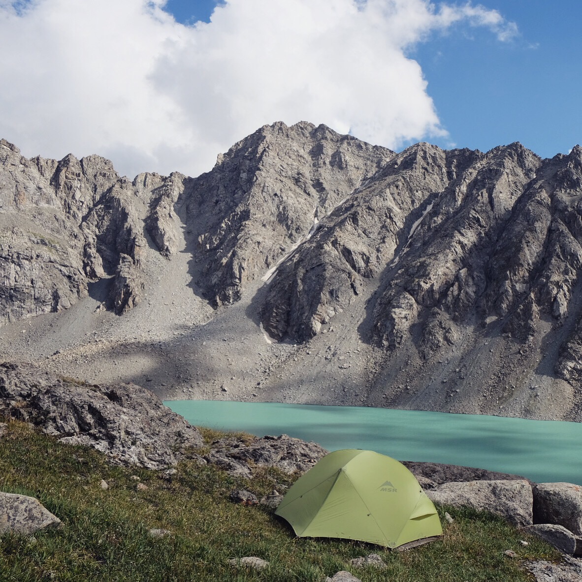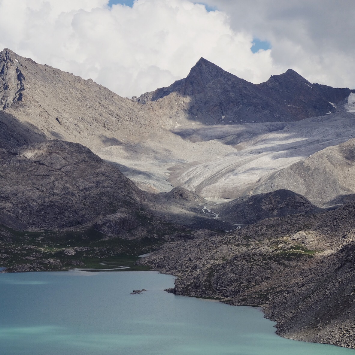 Un timido sole fa capolino al mattino seguente e fino a mezzogiorno ogni ramo o sasso del campo viene preso per uno stendino. Raggiungiamo il lago Ala-Kul dopo due ore di fatica vera – con pausa tè a metà strada offerto da un gruppo di siberiani altrettanto affaccendati nelle pratiche di asciugatura – e il panorama è davvero mozzafiato.