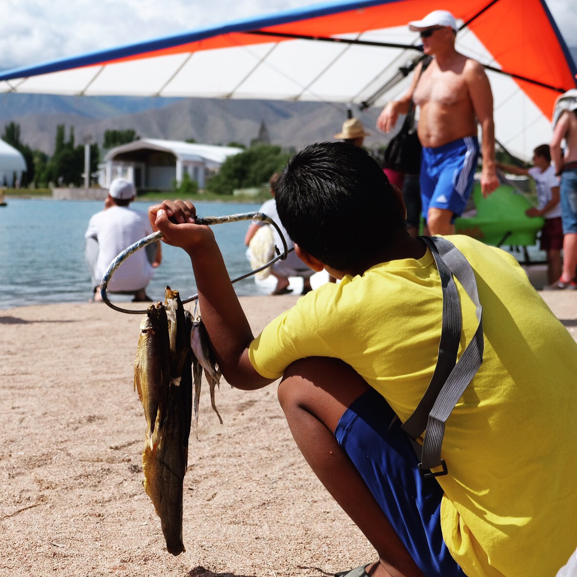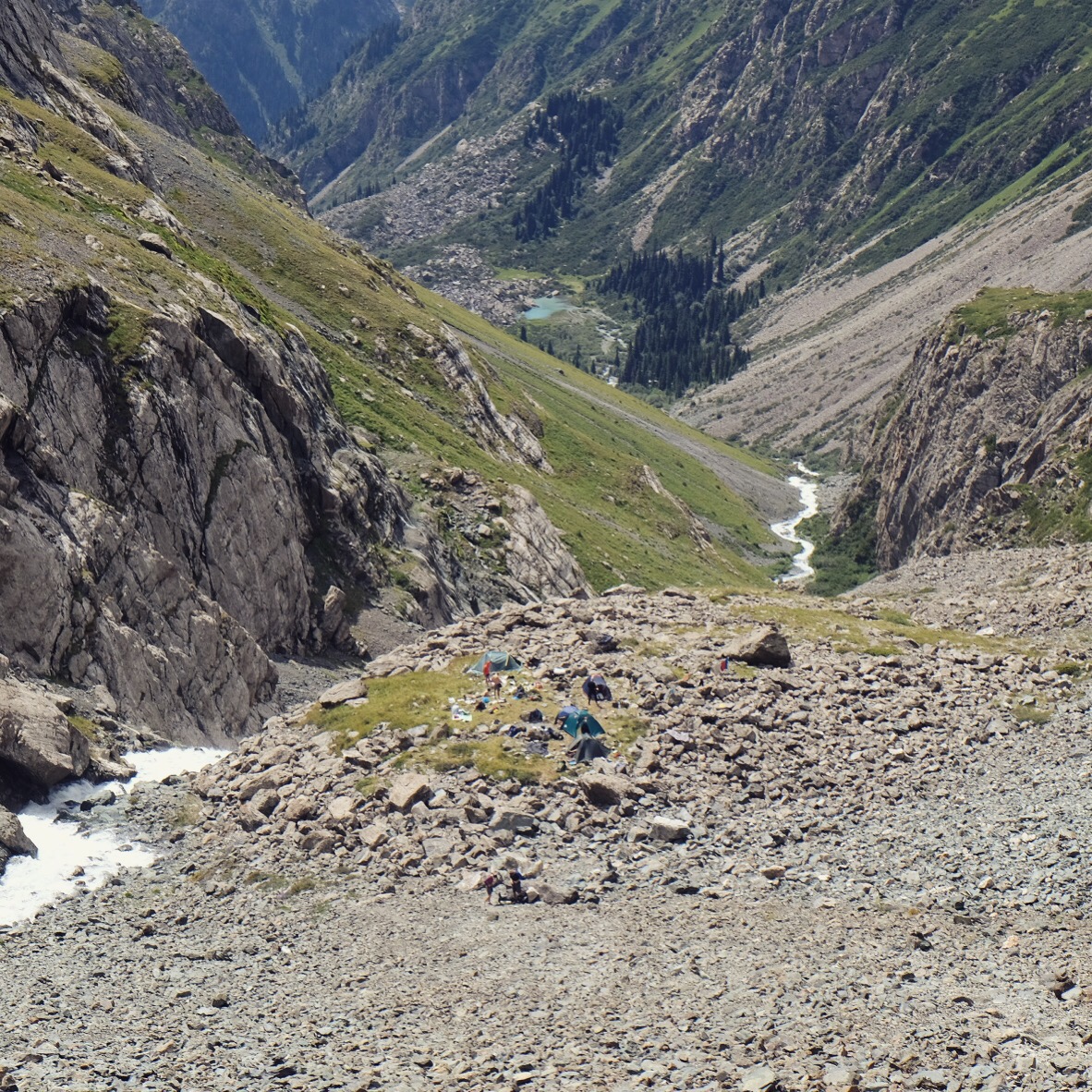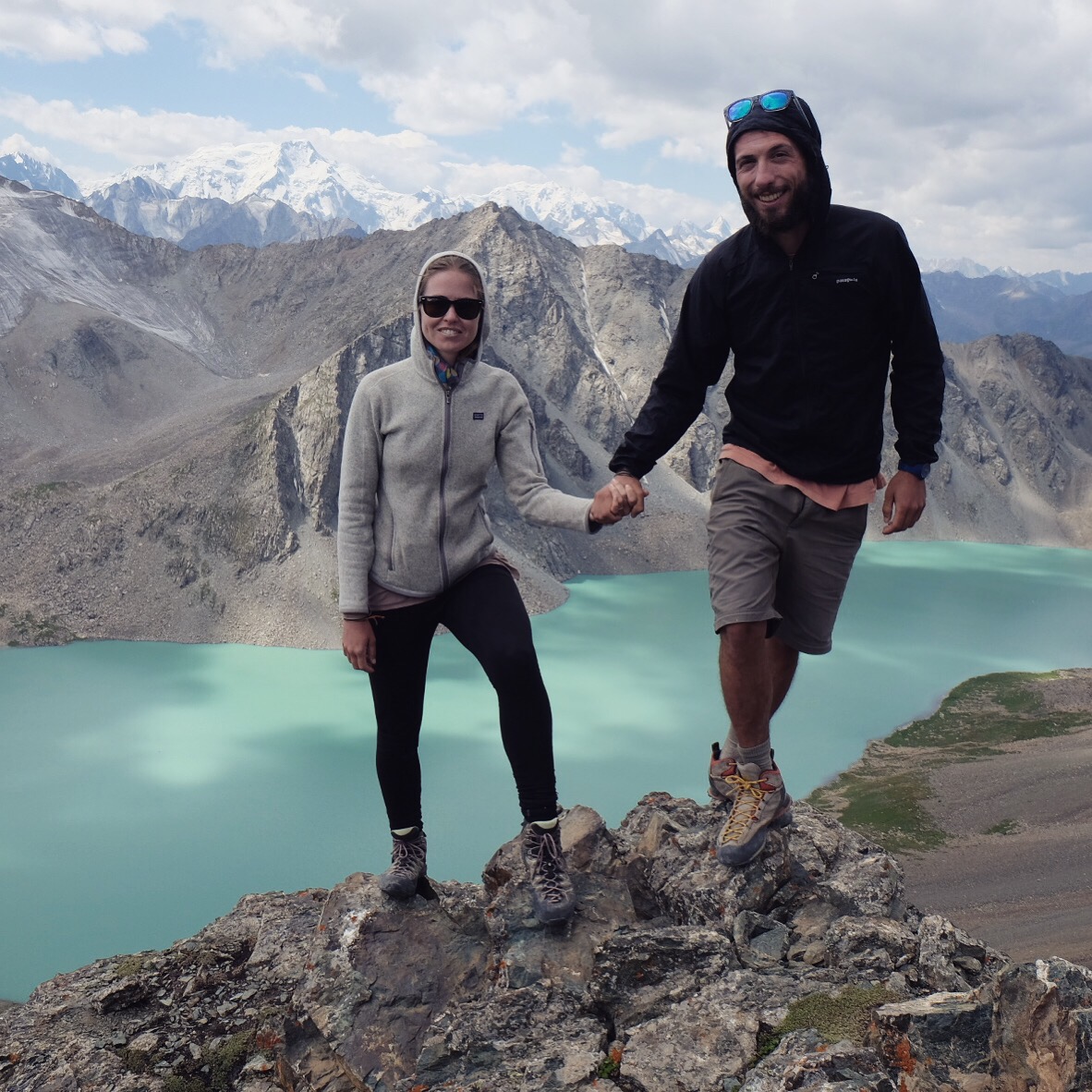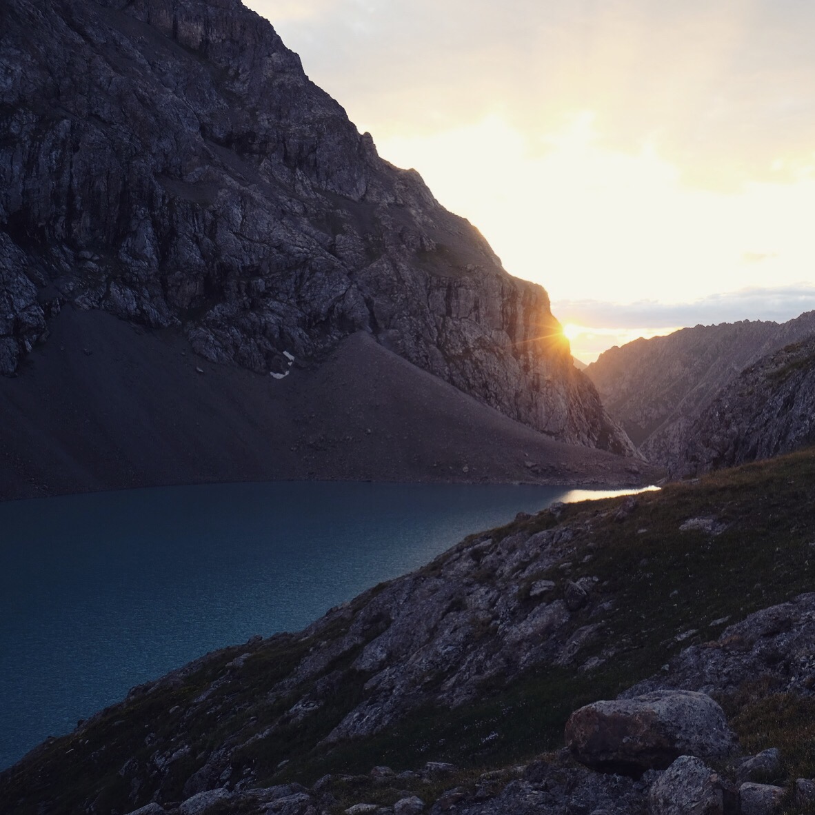 Un timido sole fa capolino al mattino seguente e fino a mezzogiorno ogni ramo o sasso del campo viene preso per uno stendino. Raggiungiamo il lago Ala-Kul dopo due ore di fatica vera – con pausa tè a metà strada offerto da un gruppo di siberiani altrettanto affaccendati nelle pratiche di asciugatura – e il panorama è davvero mozzafiato.